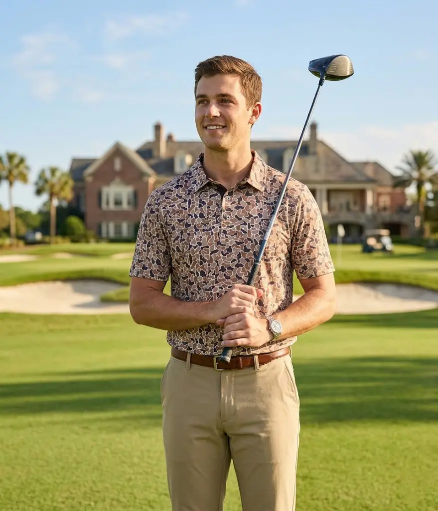 Performance Outdoor Polo – Deer & Retro Duck Camo, perfect for outdoors