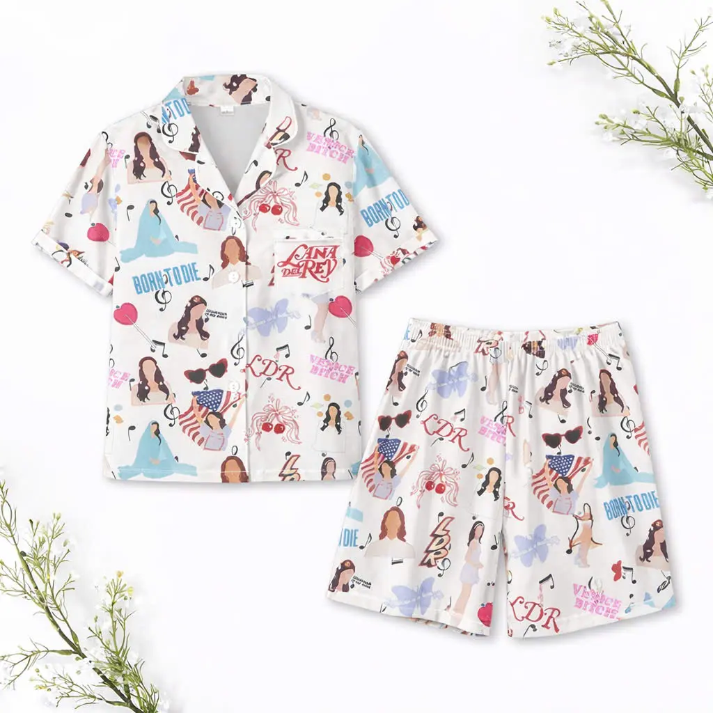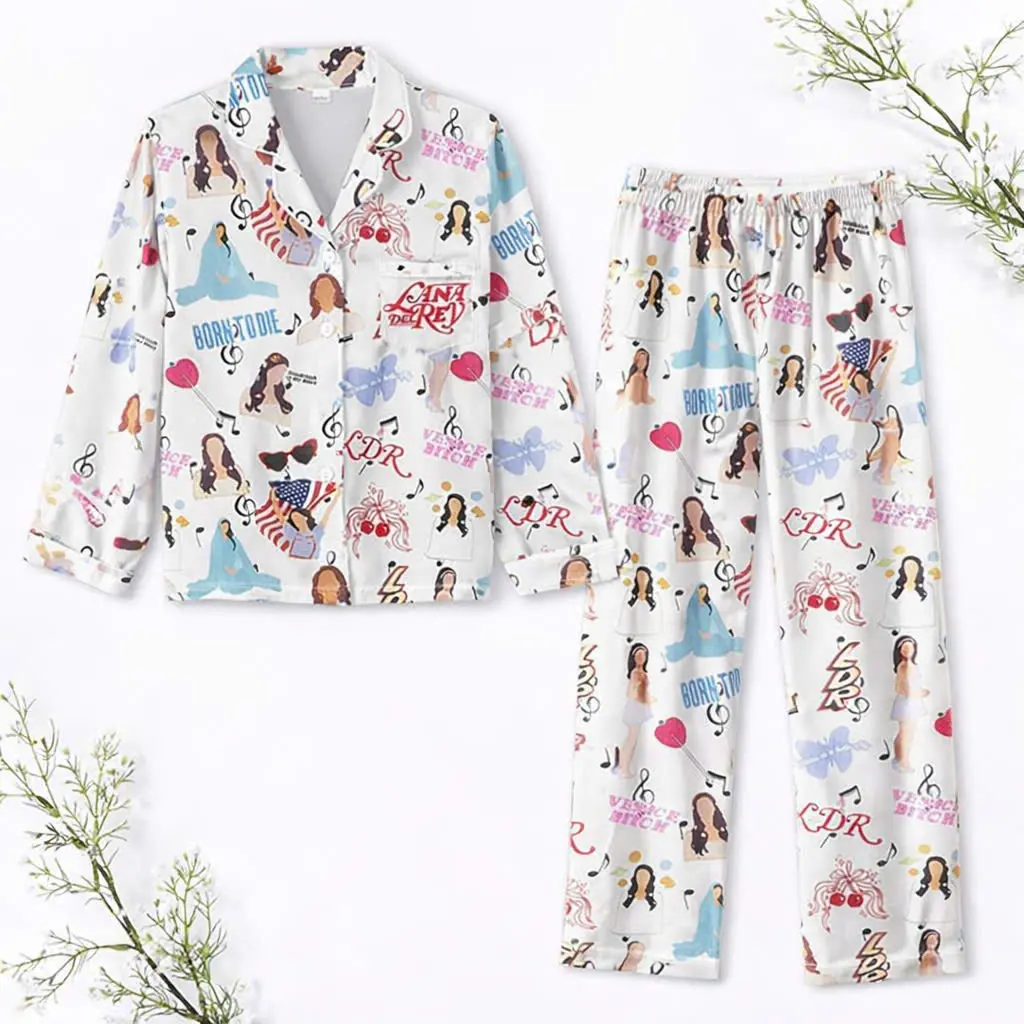 Women’s Vintage Music Print Pajama Set – Long & Short Sleeve Cute Aesthetic Sleepwear