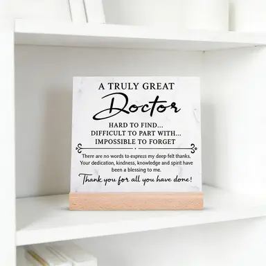 ✨ A Truly Great Doctor Acrylic Desk Plaque is an ideal thank you gift for doctors. It features a sleek acrylic design with a wooden base, making it a stylish addition to any home, office, or clinic. This plaque is a heartfelt appreciation keepsake for medical staff, symbolizing gratitude and respect. Perfect for commemorating their dedication and service.