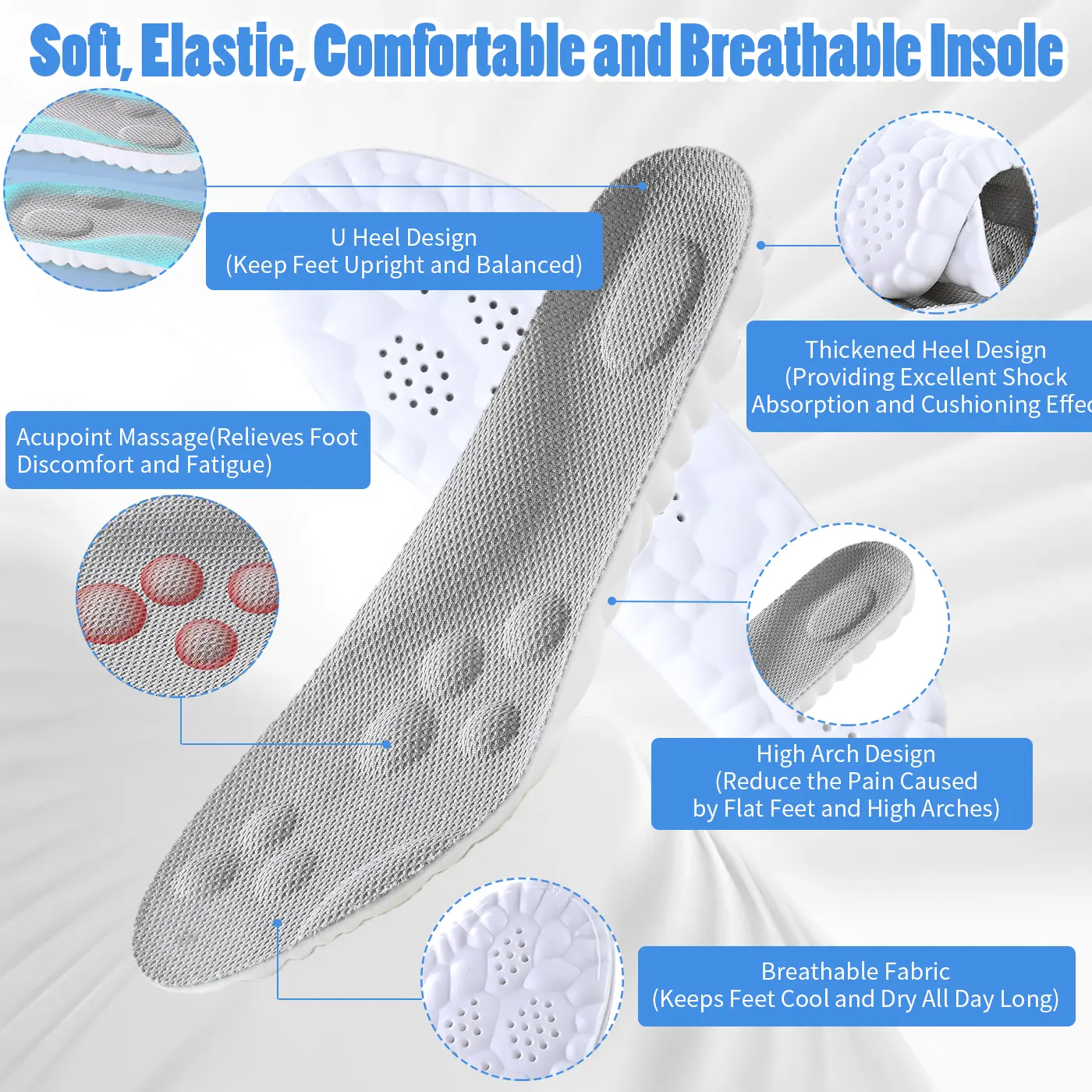 Upgrade your footwear with our 4D Cloud Insoles! Perfect for men and women, these insoles offer unparalleled comfort. Made with memory foam, they provide a super soft feel that reduces fatigue. Ideal for long days on your feet, these insoles are a must-have for anyone seeking comfort.