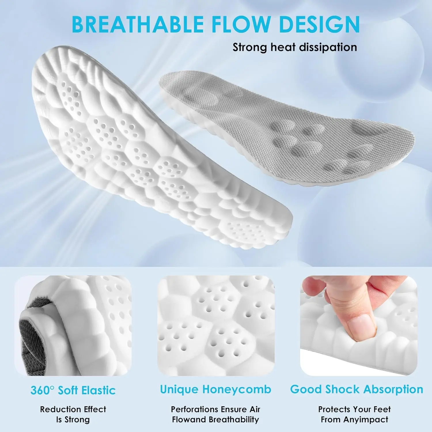 These insoles are designed for both men and women. The 4D Cloud technology adapts to your foot's shape, providing personalized comfort. Enjoy the benefits of memory foam without the hassle. Order now and experience the difference!