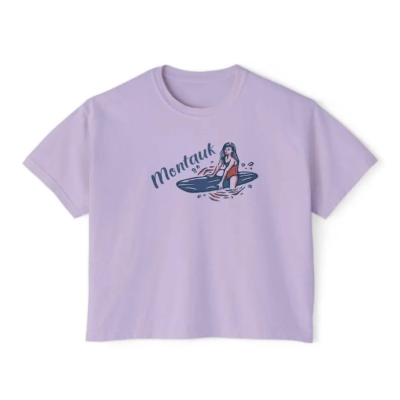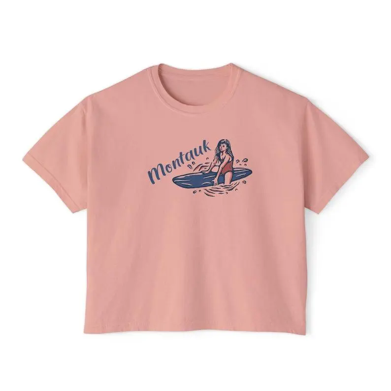 Montauk New York Surfer Girl Shirt, Coastal Beach Graphic Tee, Comfort Colors Boxy Tee Women, Summer Vacation Outfit, Aesthetic Surf Tee