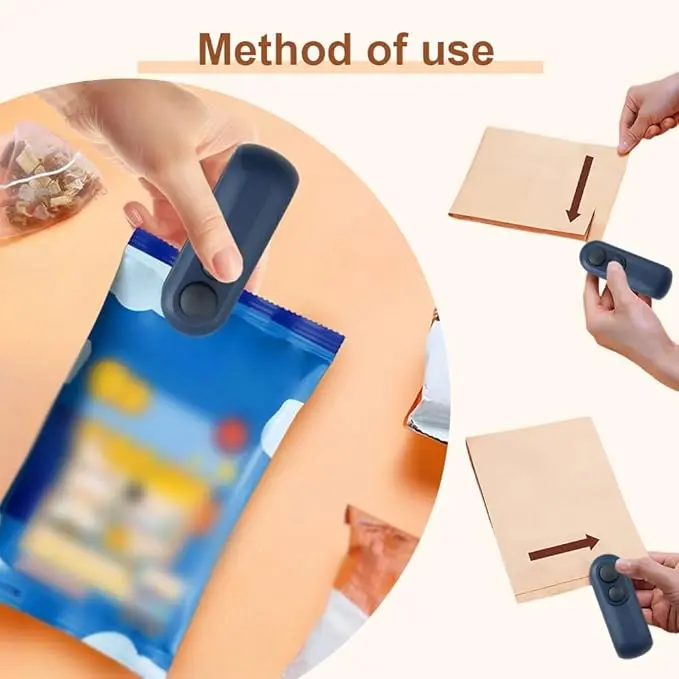 【Mini Bag Sealer】This mini bag sealer features dual functions: sealing and cutting. one side opens bags and the other seals them.It effectively seals various types of bags, such as chip bags, cookie bags, snack bags, sugar bags and so on. especially for families with kids, as it keeps snacks airtight, reducing waste.