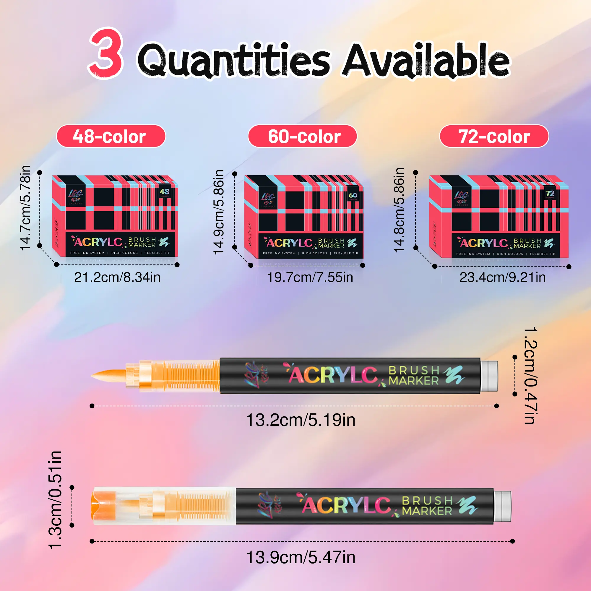 Discover the 48/60/72 Color Acrylic Paint Pens, perfect for various creative projects. These soft brush tip markers are ideal for canvas, rock painting, wood, stone, glass, ceramic, and fabric. They offer quick-drying and waterproof properties, ensuring your artwork stays vibrant. Ideal for DIY crafts, these markers provide endless possibilities for your artistic endeavors.