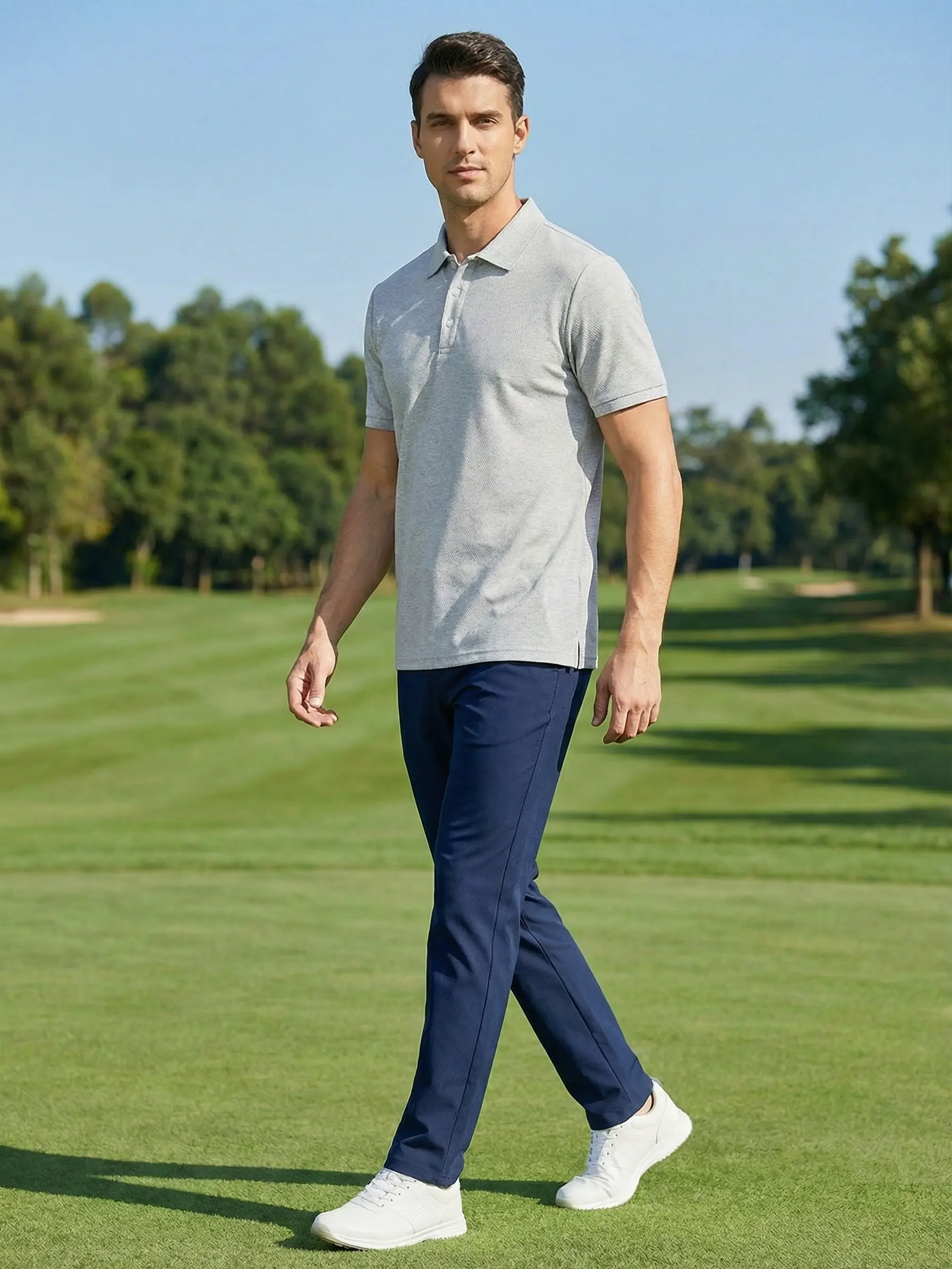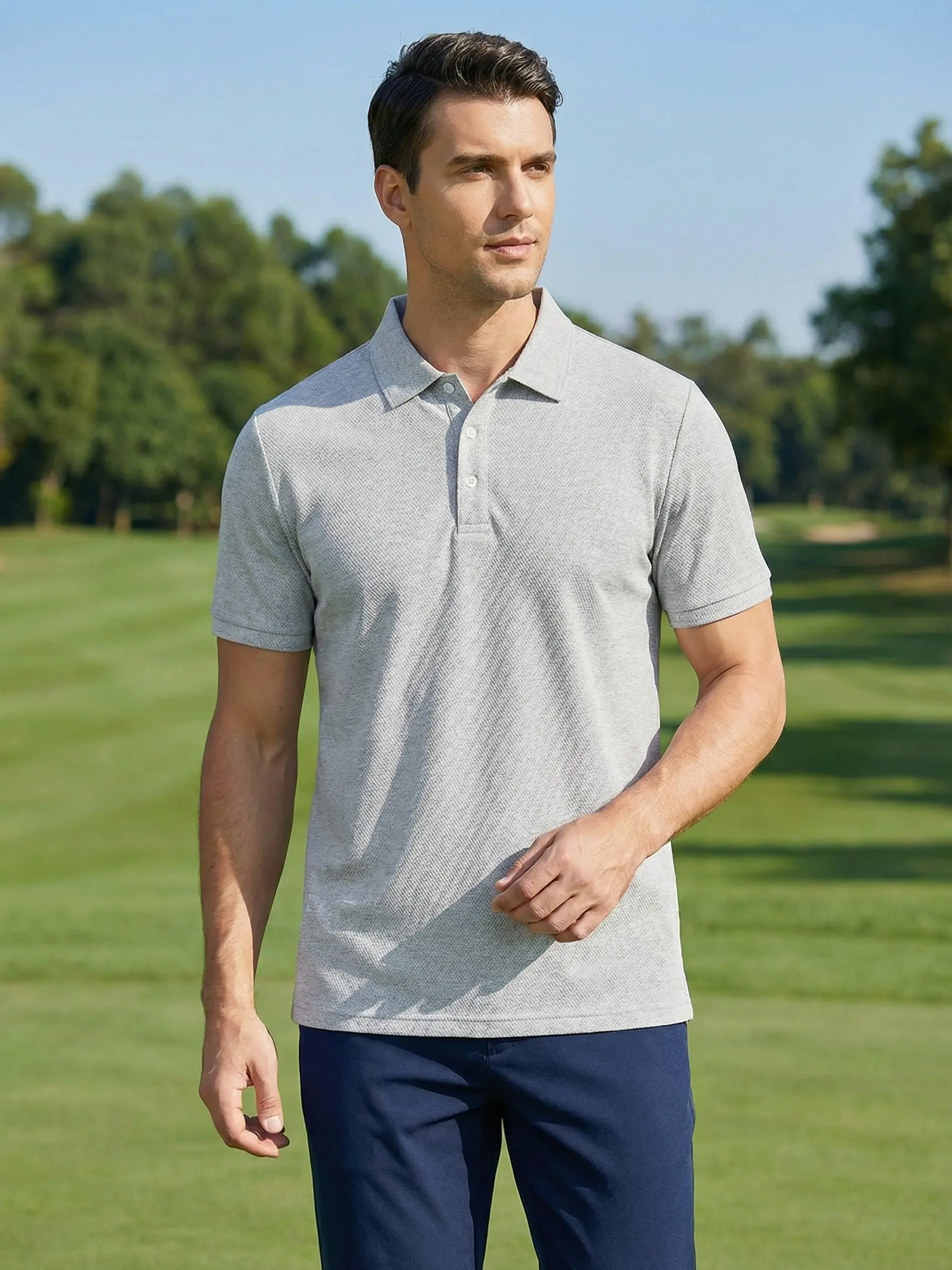 Made from 100% high-performance polyester fiber, the fabric leverages the irregular cross-section of the fibers to create a powerful "capillary effect." It quickly absorbs sweat from the skin's surface and directs it to the outer layer of the fabric for evaporation, drying 2–3 times faster than ordinary cotton fabrics. Whether you're playing golf outdoors or working in a fast-paced office, you'll stay dry and presentable at all times.
