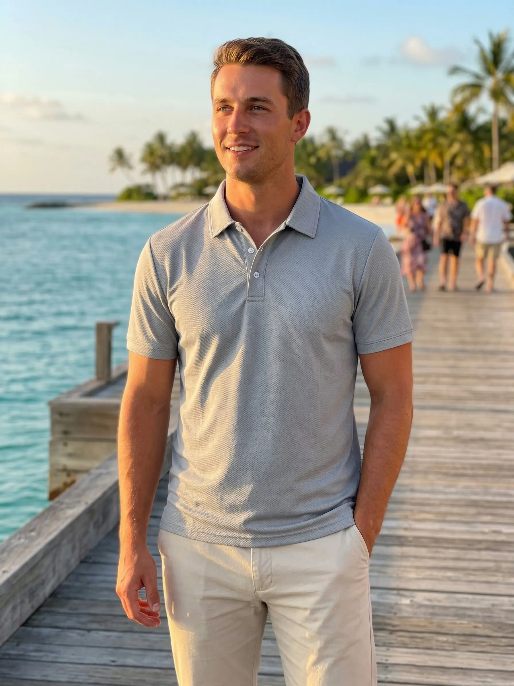 The simple polo collar design, paired with a refined three-button placket, combines the formality of business attire with the vitality of sportswear. The 100% polyester fabric offers excellent colorfastness, remaining pure white like new and resistant to yellowing and pilling. Pair it with dress pants for commuting or Bermuda shorts for vacations—it’s a highly versatile staple in any man’s wardrobe.