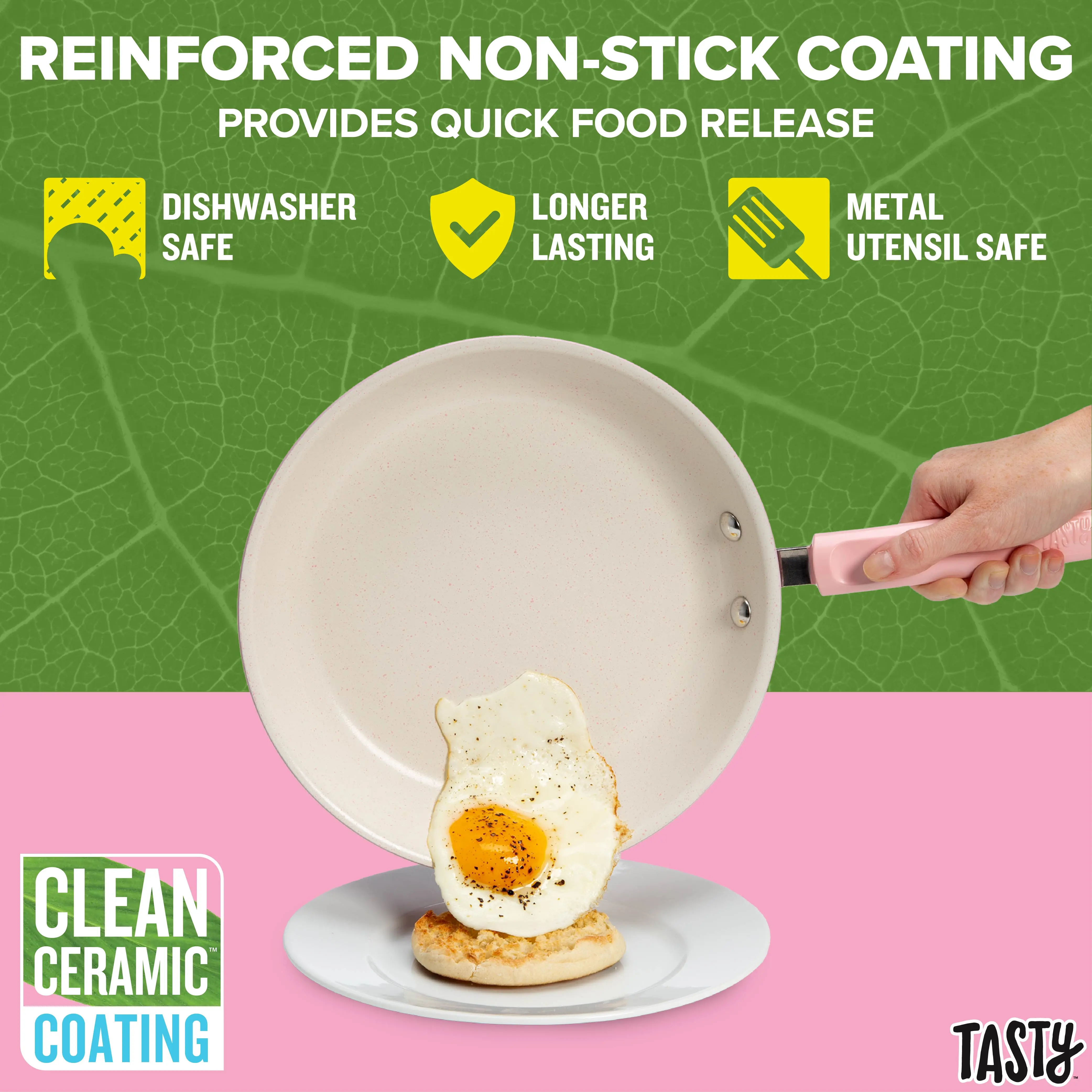 ·Better, Stronger, Longer-Lasting Non-Stick: This pots and pans set features a premium, reinforced Clean Ceramic non-stick coating that allows food to easily slide out of the pan