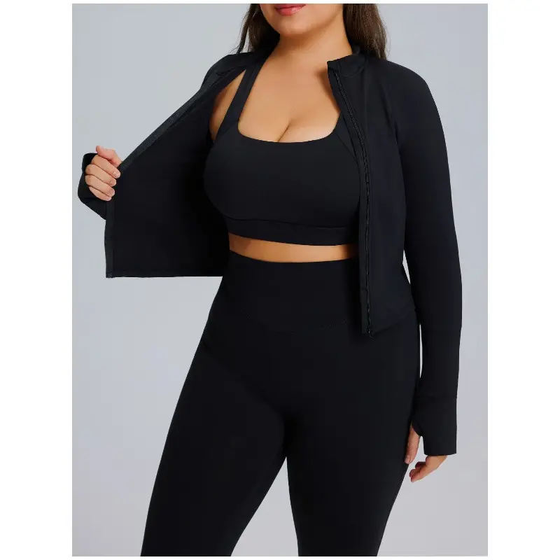 This garment is available in plus sizes and is designed for fuller figures. Please refer to the size chart. Featuring a curved seam line that flatters the natural silhouette, this piece offers both structure and style. The thoughtful thumb-hole cuffs keep sleeves securely in place, providing extra warmth and a smooth layer during movement. A high-waist design sculpts the midsection, creating a streamlined look that pairs perfectly with any active or casual outfit. Blending function with clean aesthetics, it delivers all-day comfort and confidence—ideal for yoga, workouts, or effortless everyday wear.