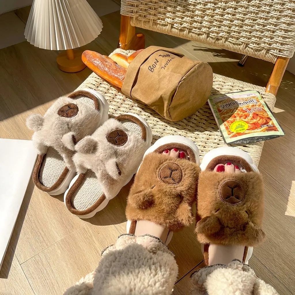 These adorable slippers are designed for women, offering comfort and style for all four seasons. Ideal for indoor use, they add a touch of charm to your home furnishings. 🏠