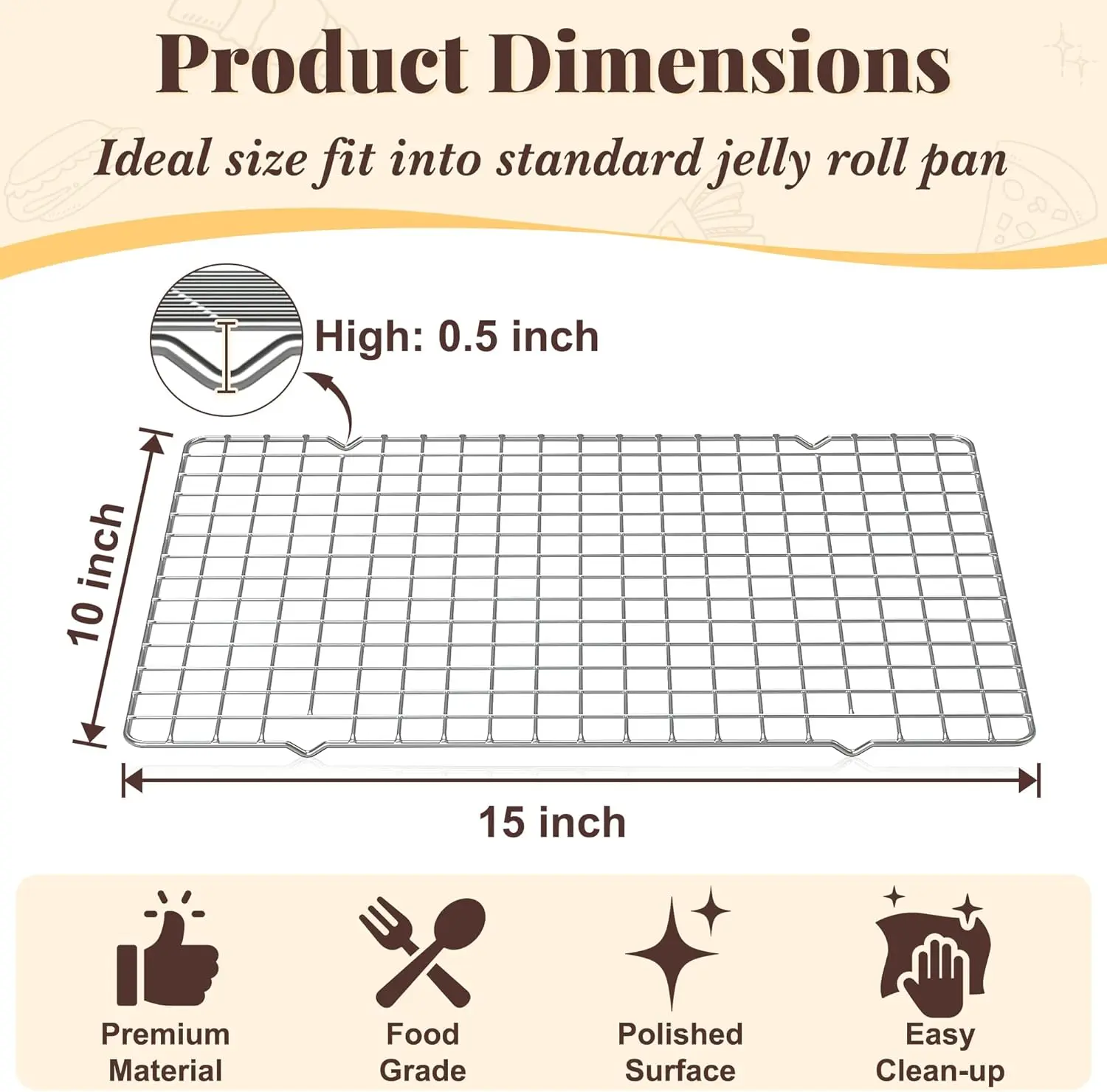 ·Fits standard 10 x 15 inch jelly roll pans and works well independently for baking or cooling