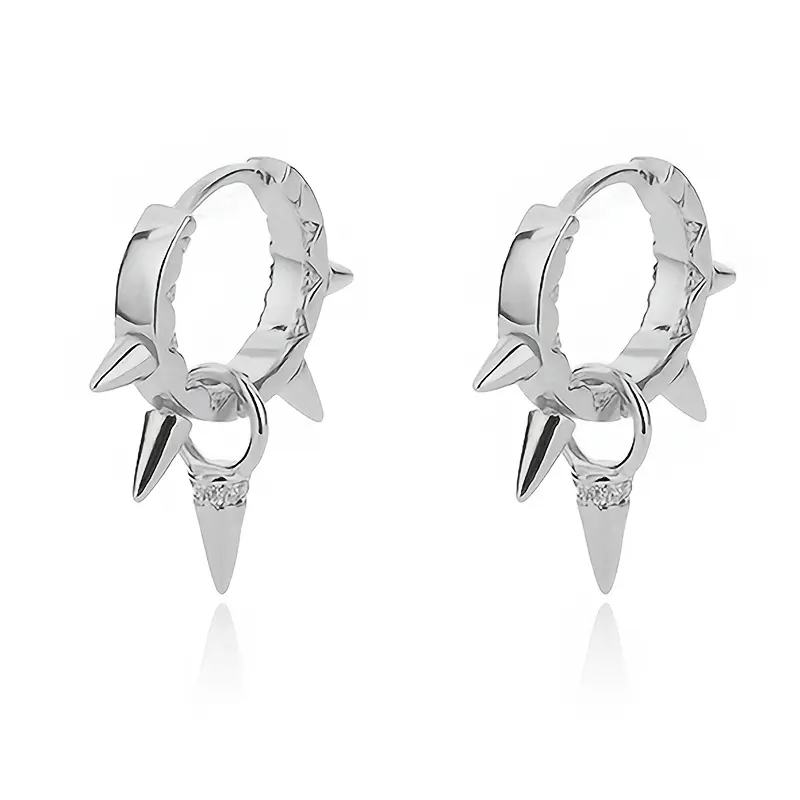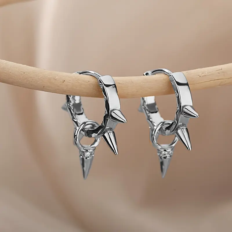 Oufer 2PCS Stainless Steel Spike Hoop Earrings Hook Style Handmade Poslish Unisex Casual Accessory for Gothic Look 20G Durable Easy to Wear Durable 20mm Height 9mm Inner Diameter