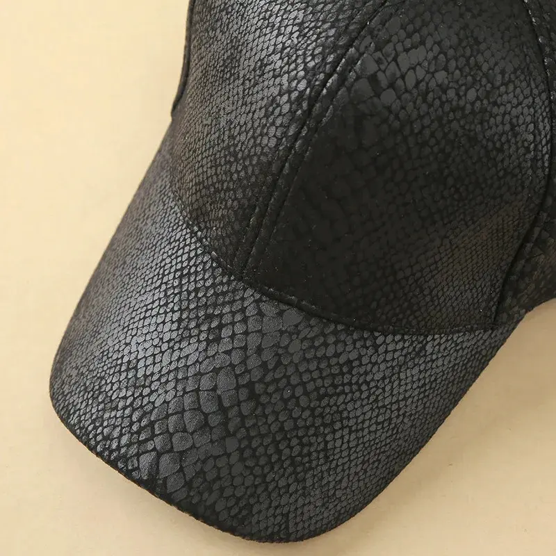 Men's High Quality Leather Baseball Cap with Adjustable Snap Closure Outdoor Activities, Adjustable Baseball Cap