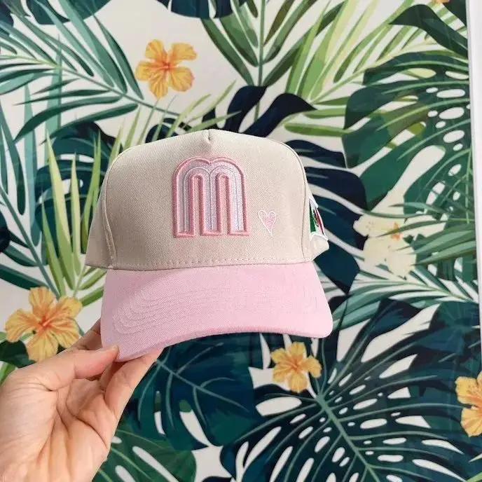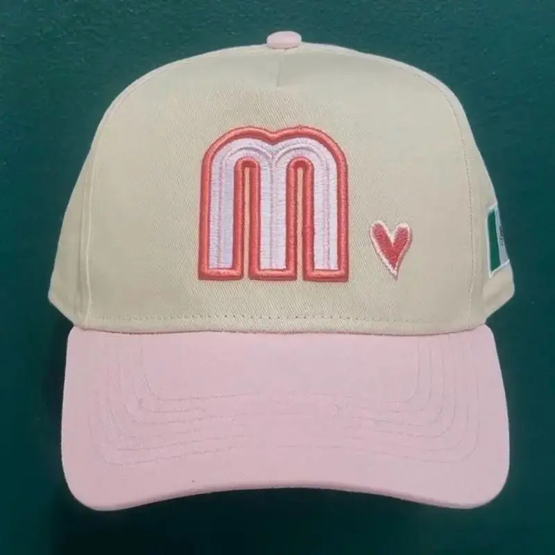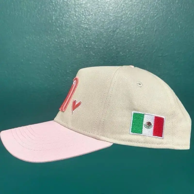 Pink Mexico Baseball Hat with Heart & Flag Embroidery for Stylish Outfits - White Cap with Pink Trim, Adjustable Strap, Breathable Cotton, Ideal for Casual Wear & Mexican Culture Apparel -Gorra para Mexicanas
