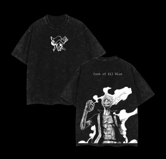 5. Sanji Cook of All Blue Tee Oversized Washed Tshirt Straw Hat Pirates Streetwear