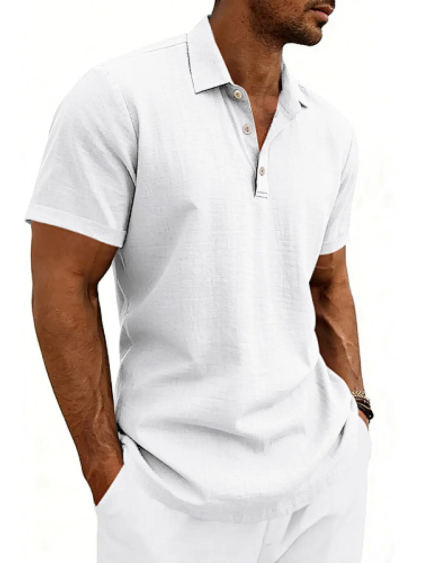 Men's summer textured slim fit short sleeved polo shirt! Breathable and sweat proof, with a three button design that allows for versatile commuting and vacation scenarios