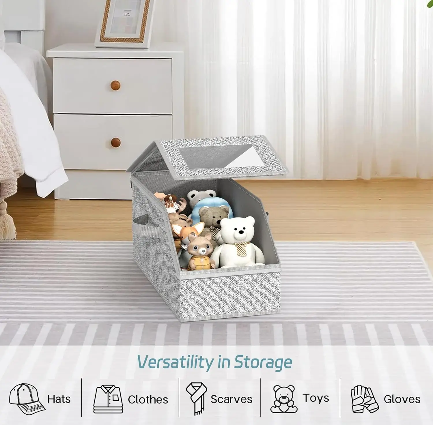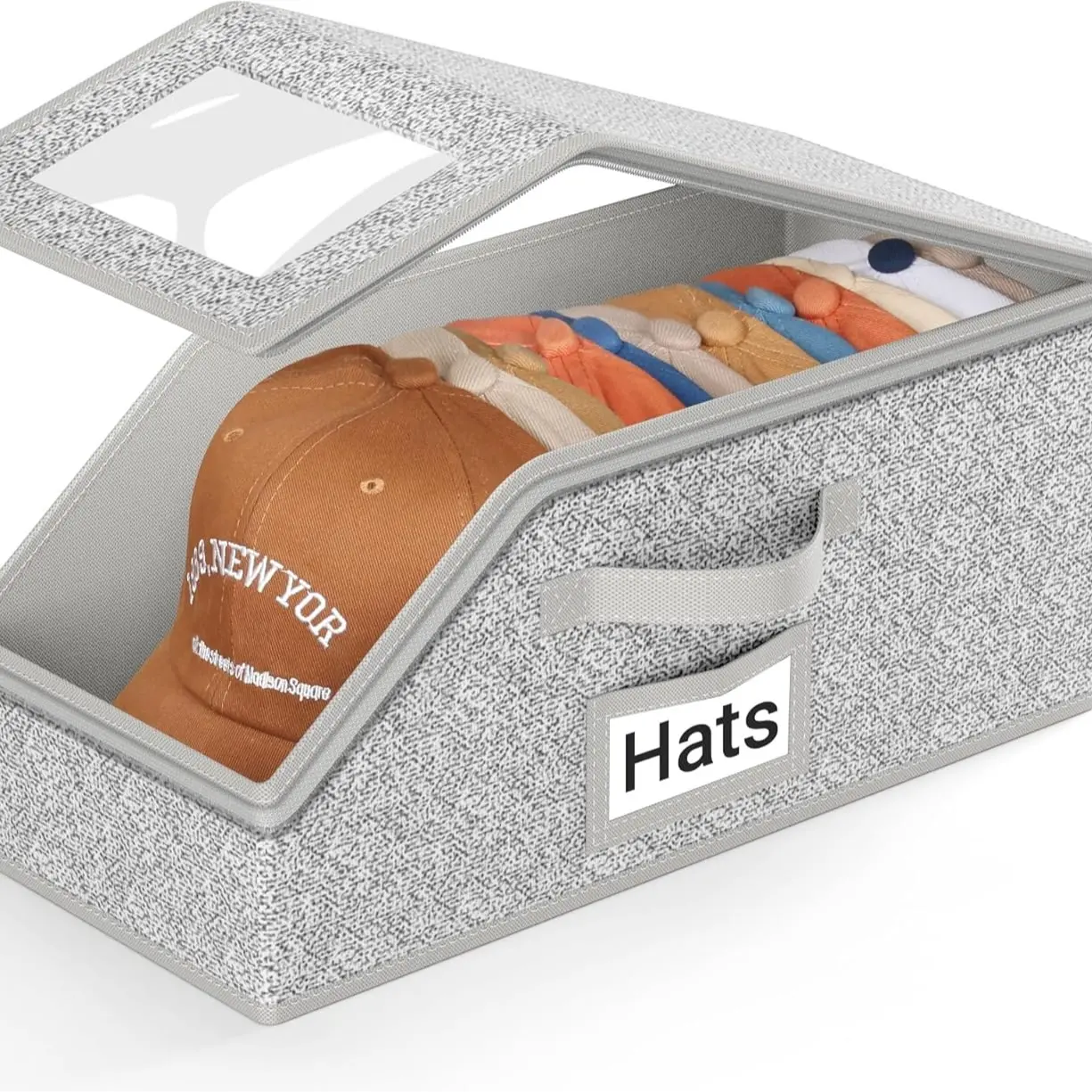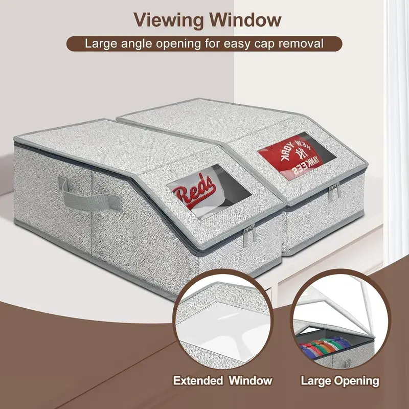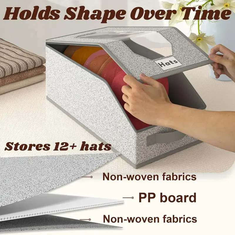 ·【Versatile Uses】: Hat organizer box can also convenient to store your miscellaneous items such as clothing, bedding, books, toys, scarves and more, side name card window for easy identification, can be stored in the bedroom, living room, wardrobe or car trunk.