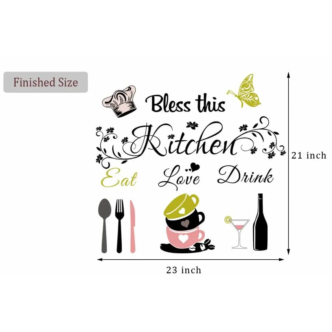 Wide Application: These kitchen wall quotes suitable for kitchen, dining room, pantry, home, office, school, coffee shop, and so on. It can be applied to any smooth, clean and dry surface of walls, tiles, mirrors, windows and furniture, etc. reusable without leaving damage or residue. Not suitable for dirty or rough surface. Special Design: Our kitchen wall art design with inspirational lettering quote Bless this Kitchen Eat Love Drink and nice photo props with colorful, this fresh color can be pasted anywhere you like to decorate your home; Combined with minimalist design and butterfly shapes, it immediately becomes more interesting and the focus of the family, darkening the decorations around it. Quality Material: The Kitchen wall art stickers are made of quality vinyl material with long lasting use, and it's easy to peel the wall sticker from the vinyl backing. This kitchen wall decor is colorfast and waterproof. They will stay put even after cleaning. Proper Size: Our kitchen wall sticker sheet size approx. 35.5 x 11.8 inches. When you received will be in compact form and wording is in disrupted order, grouping reference is shown in the product photos, which size approx. 23 x 21 inches. You may also move them according to your preference. Letters are separated by word. colorful design makes the wall decals an outstanding mural. Great Gift: These funny kitchen wall quotes wall stickers are feasible to be sent as gifts to your family, friends. Seeing our kitchen quote bless this kitchen can always remind people to bless the love and add a warm atmosphere to the dining environment.