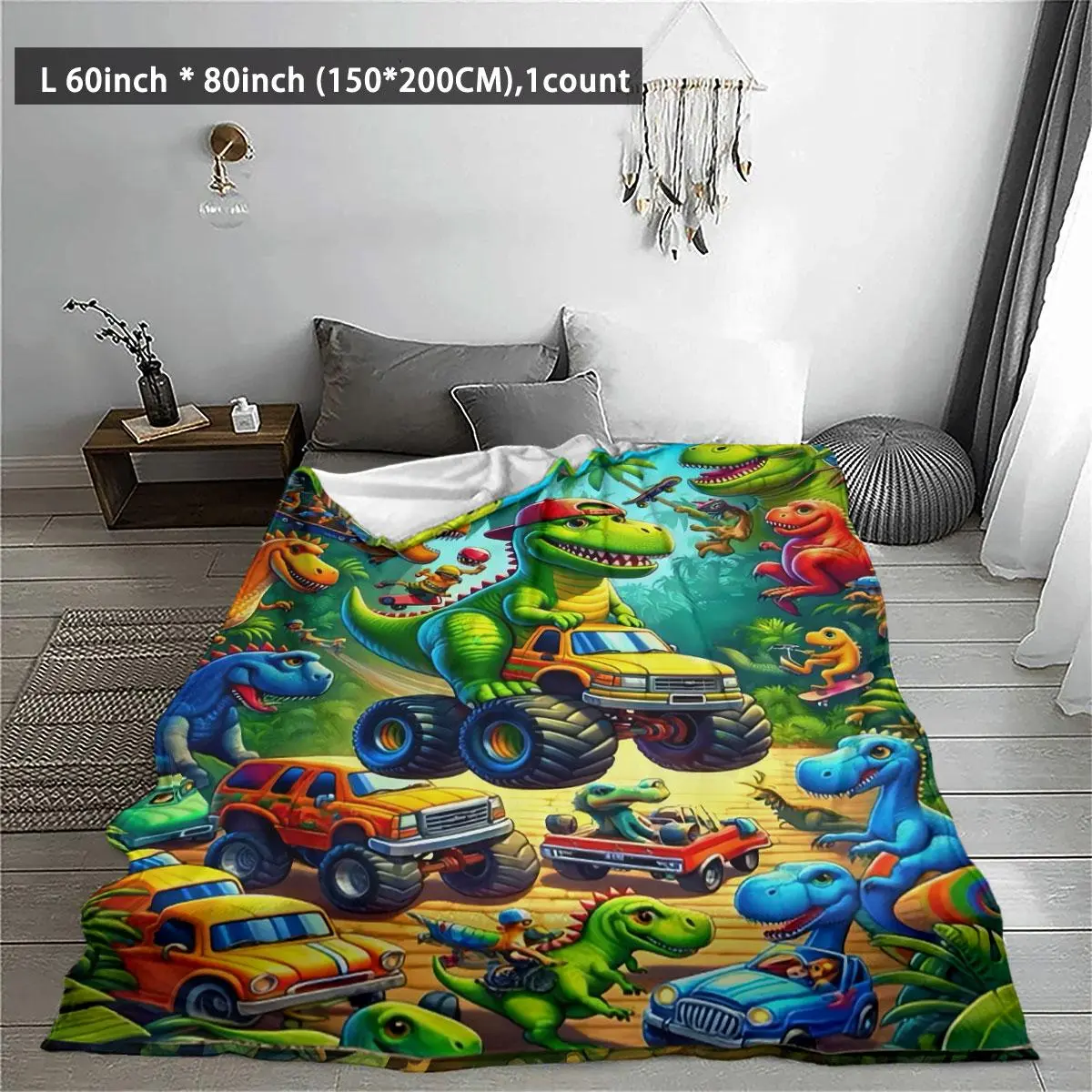 Cartoon Dinosaur Pattern Blanket, 1 Count Soft and Comfortable Air-conditioned Room Flannel Throw, Warm Nap Blanket for Home & Office, Cozy Hooded Blanket