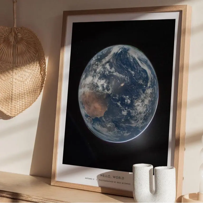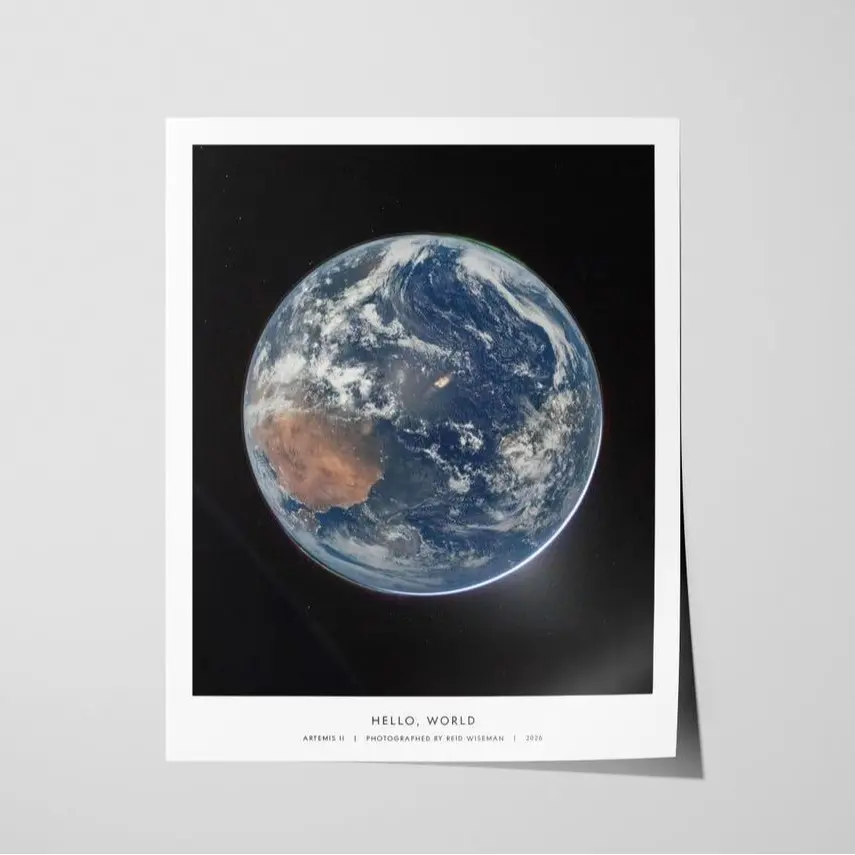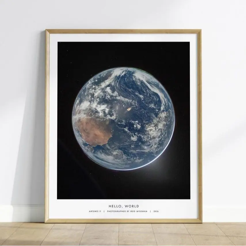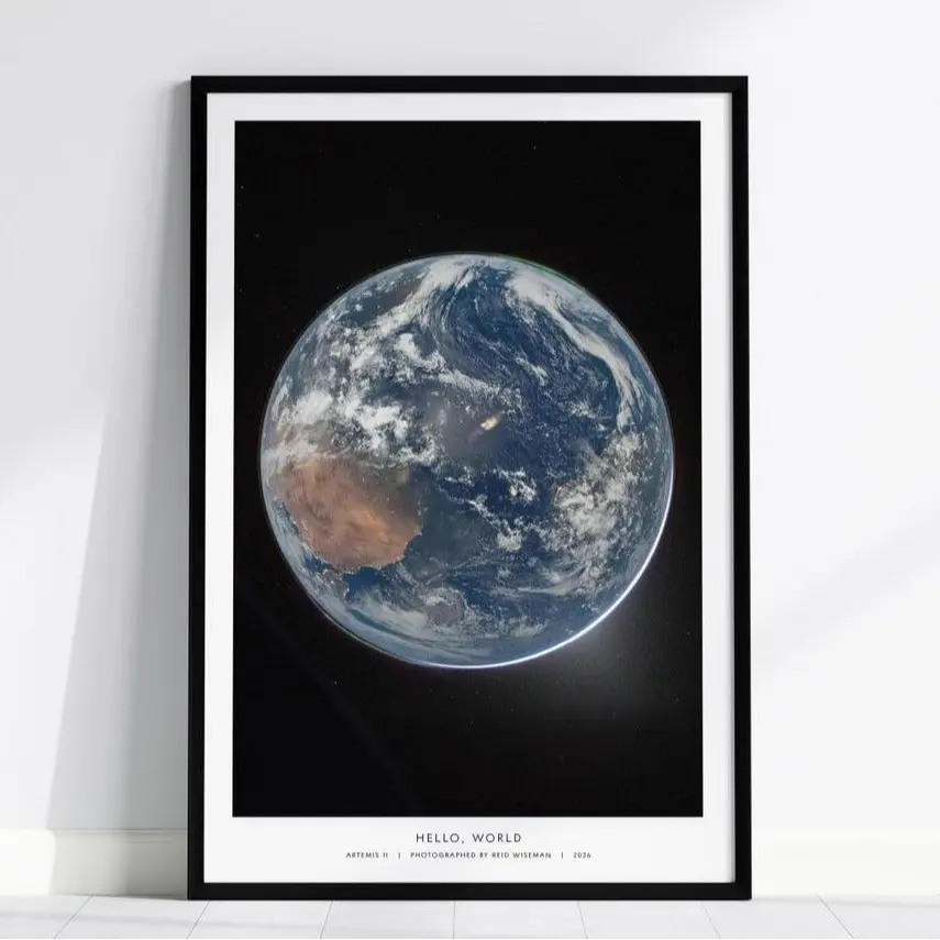 Hello World NASA Poster No Frame, Artemis II Earth Photo, Blue Marble Print, Reid Wiseman Space Art, NASA Gift, Planet Earth Poster, Framed Print