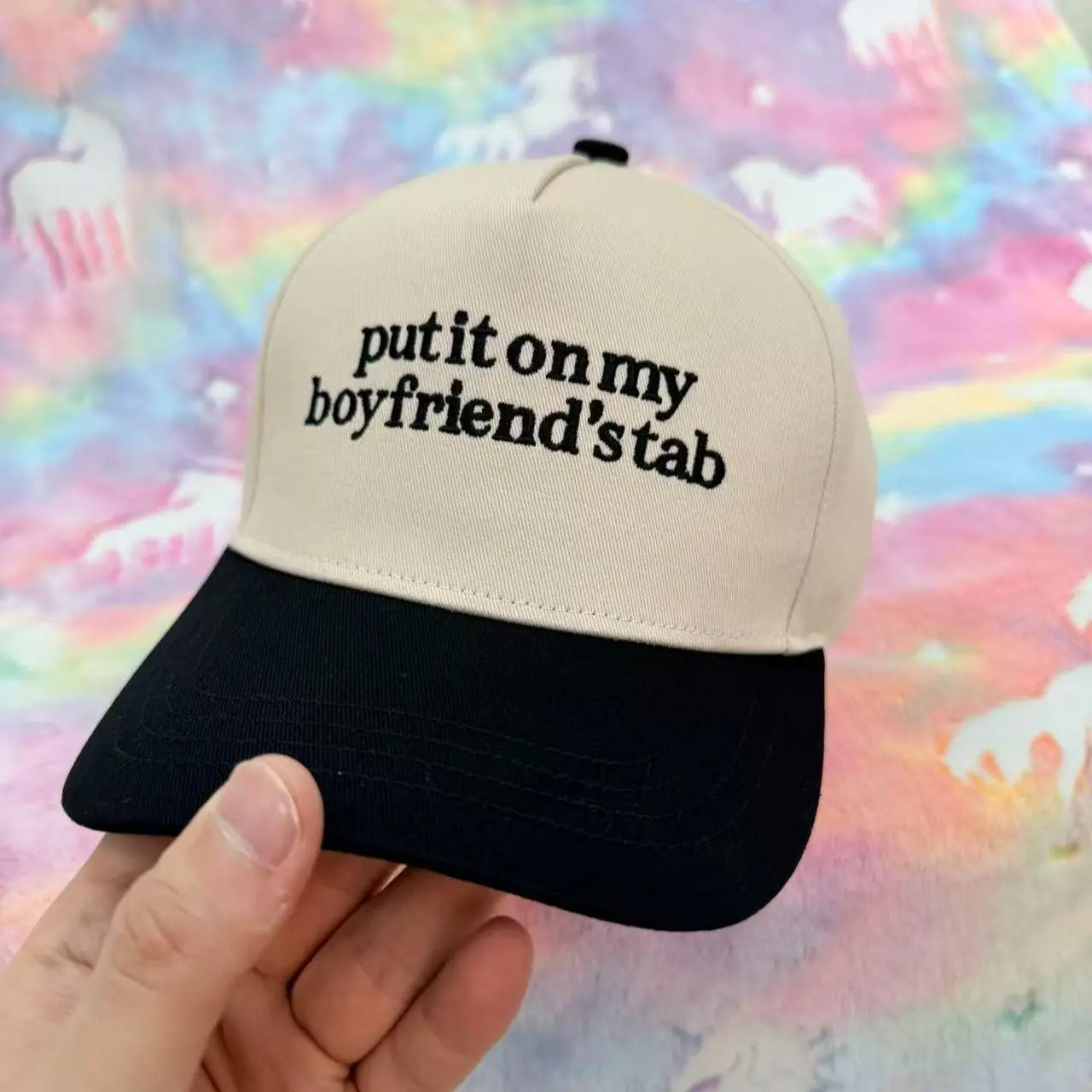 BOLD “PUT IT ON MY BOYFRIEND’S TAB” EMBROIDERY: Featuring crisp, high-quality embroidery with the phrase “Put It On My Boyfriend’s Tab”, this embroidered hat delivers a playful, confident statement with classic vintage appeal. Designed to stand out without being over the top, it’s the perfect mix of humor and timeless style.