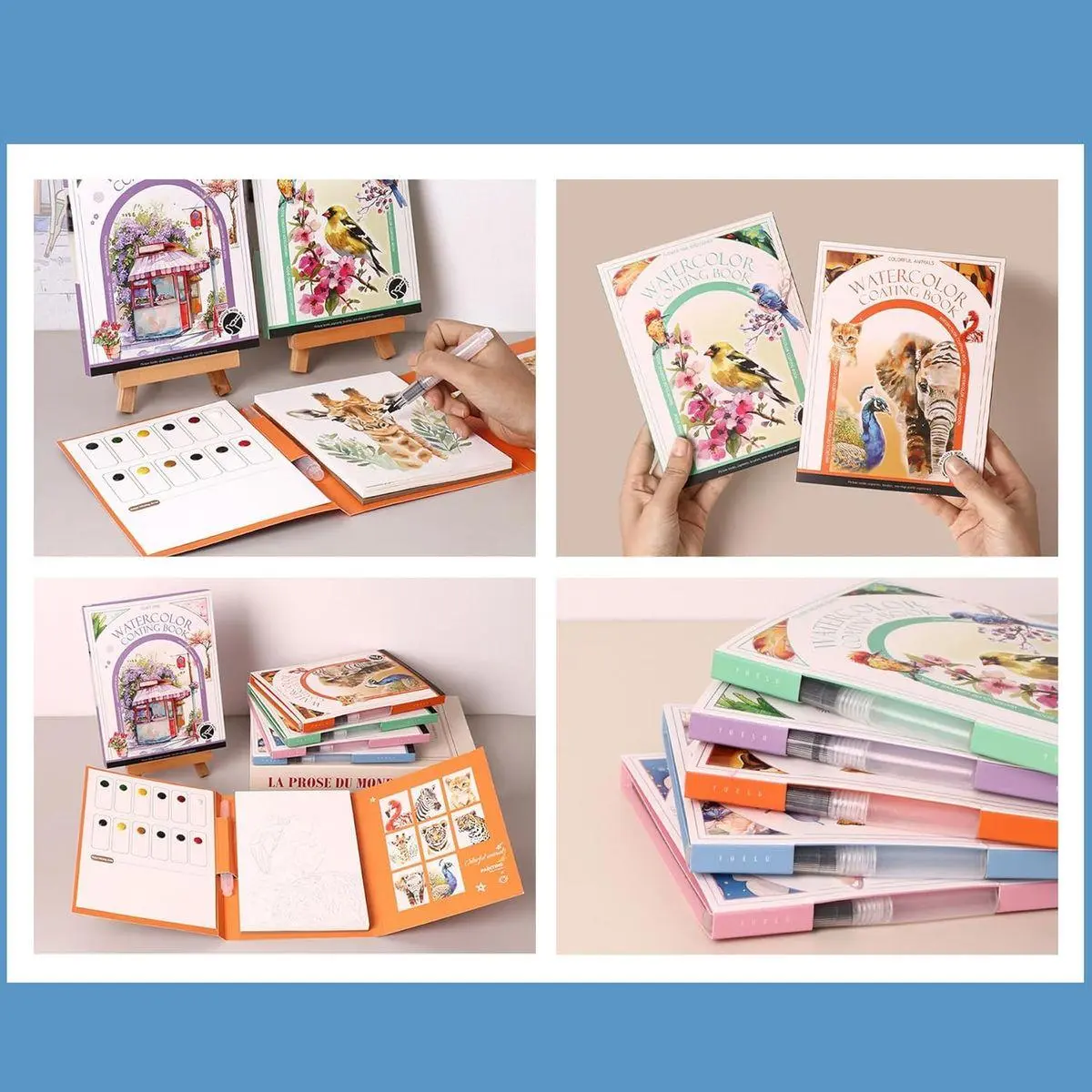 Compact Size with Included Painting Tools: Finished book size approx. 18.6 × 14.2 cm, inner painting pages approx. 17.5 × 12.4 cm, includes a refillable water brush and color reference card, making it a complete watercolor learning set for adult use.
