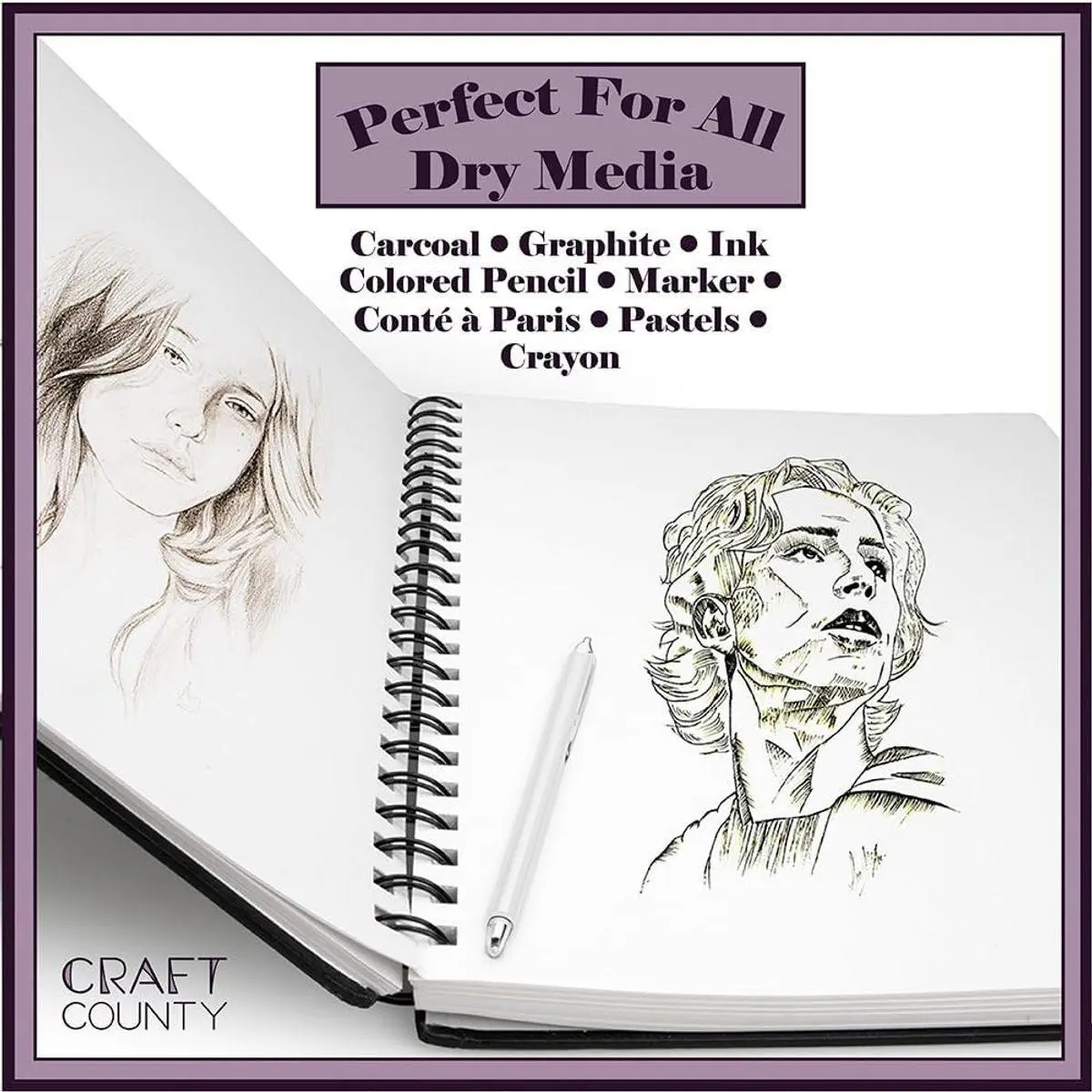 SIZING: Bound with 80 sheets of 75 lb. paper to allow for a wider range of art styles and mediums from dry media such as pencils, pens, crayons, charcoal, pastels and sketching sticks, as well as less dry media such as markers and pens. Each sketchbook measures 9” x 12” to offer a large, but portable canvas to work with.