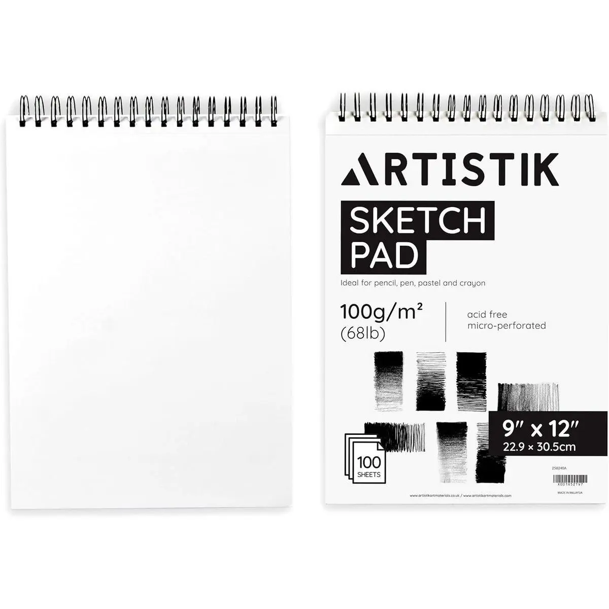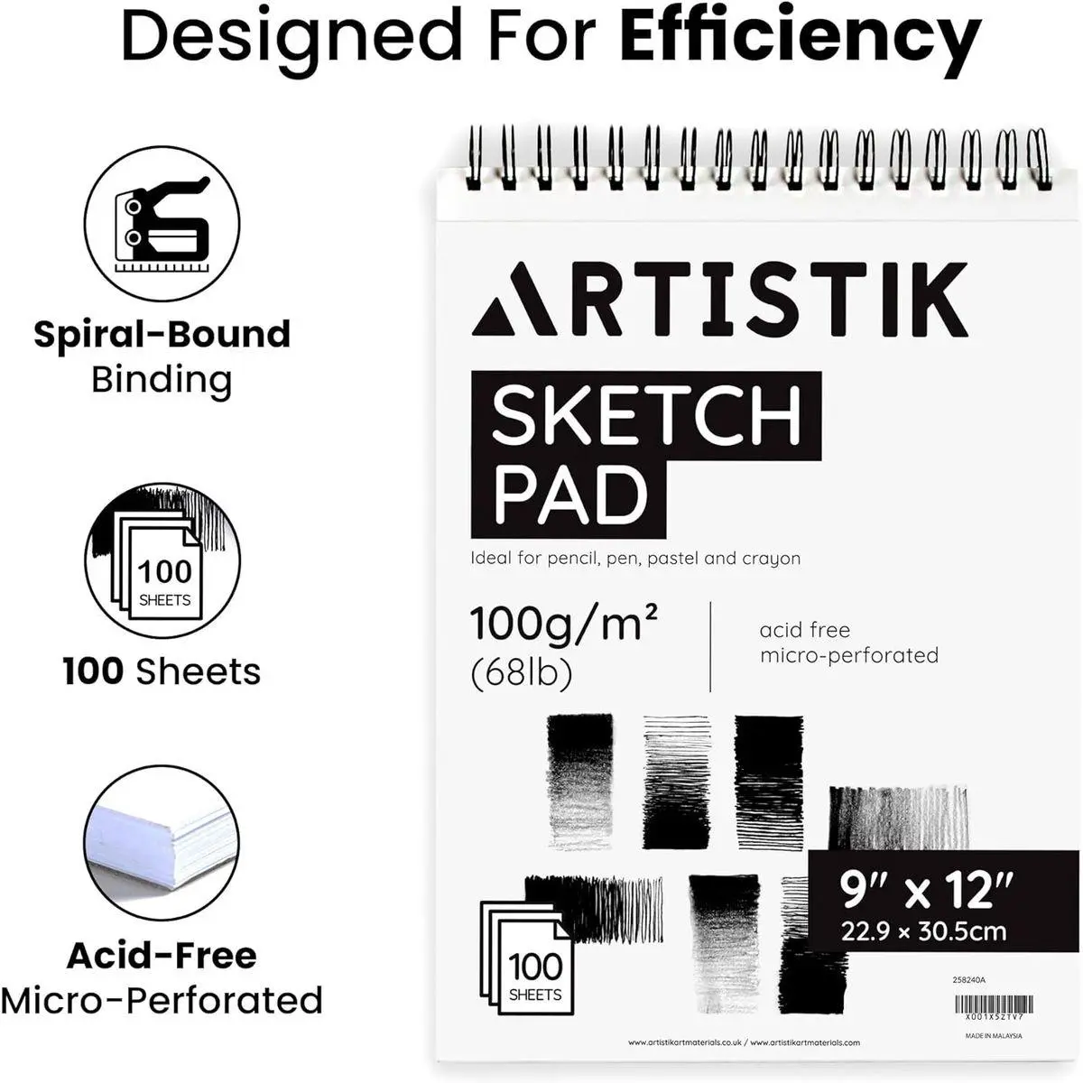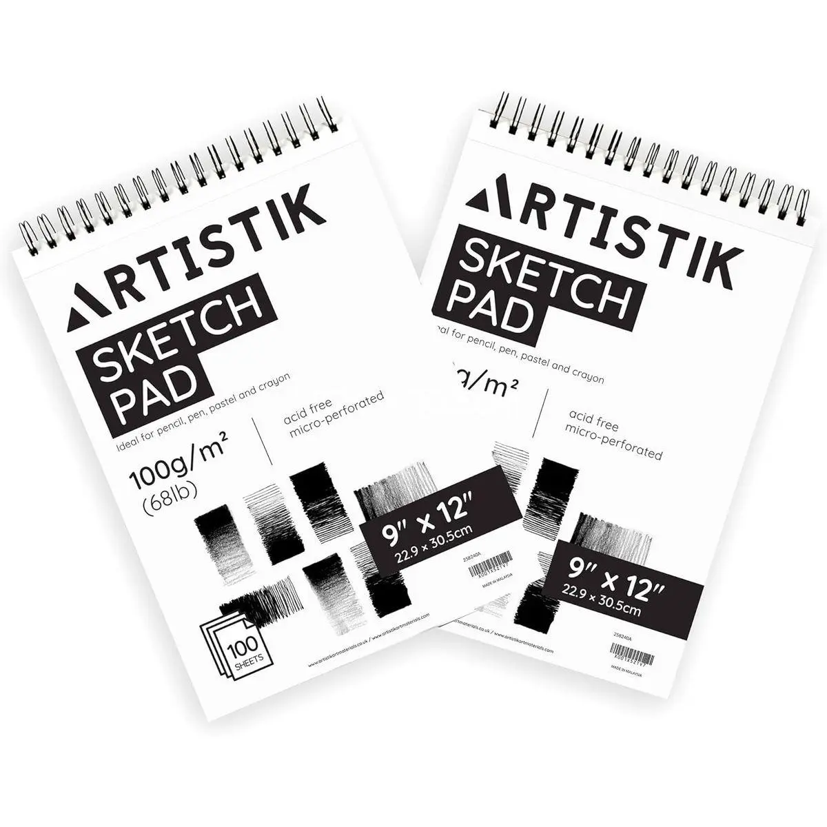 5. Spiral Sketch Pad – 100-Sheet Perforated Sketchbook for Pencil, Pastel & Crayon – 100 g/m²(68lb) Mixed Media Sketching & Writing Pad – 9" x 12", Pack of 2