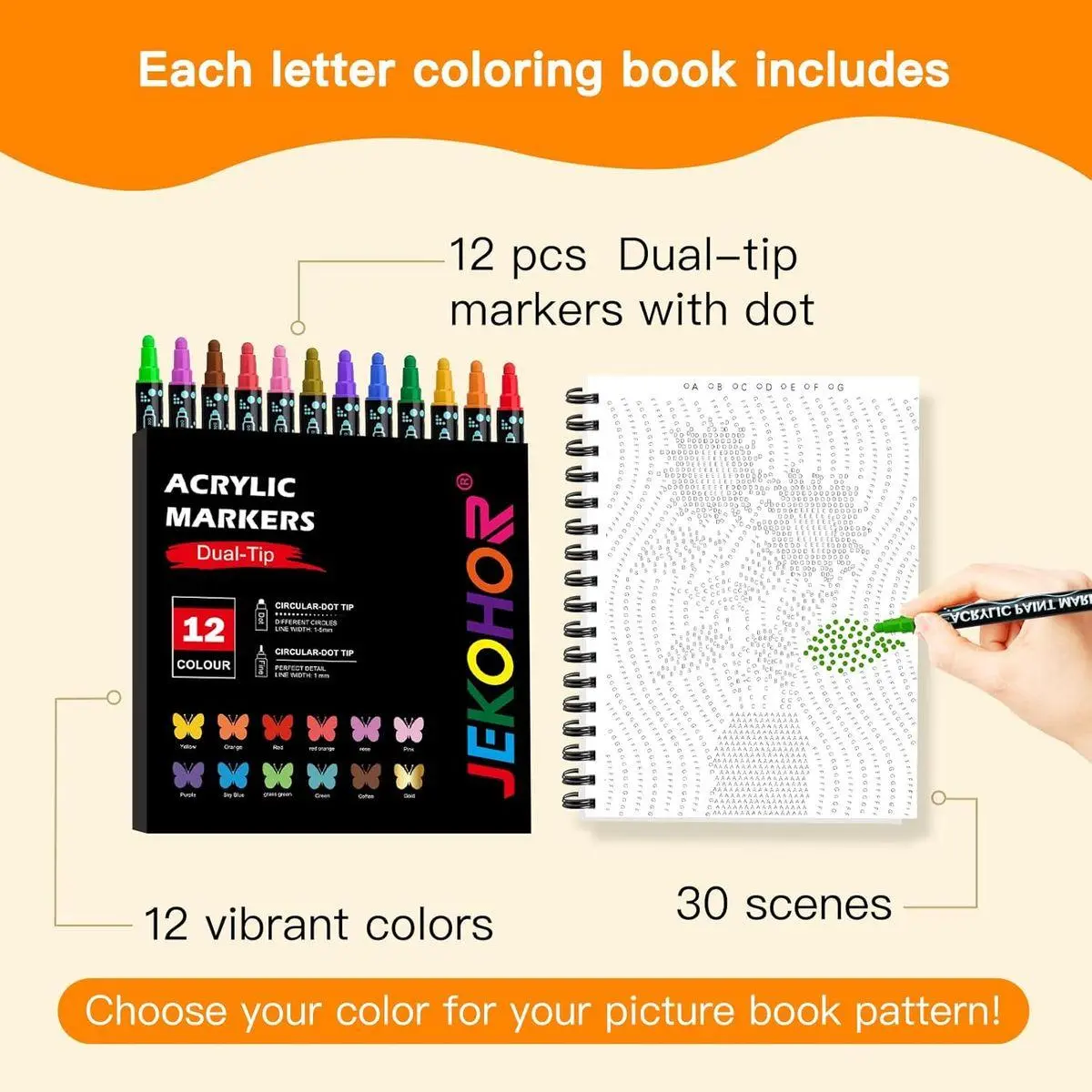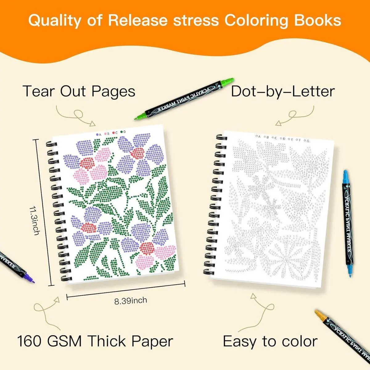 🌵Exquisite Gift Set With Coloring Book: A perfect decompression tool to release tension and improve mood. This set includes 12 double-headed markers. The dot markers have unique functions and are durable. These high-quality art markers have a variety of gorgeous colors, which are very suitable for creating energetic works of art, and there are unlimited possibilities for free creation.