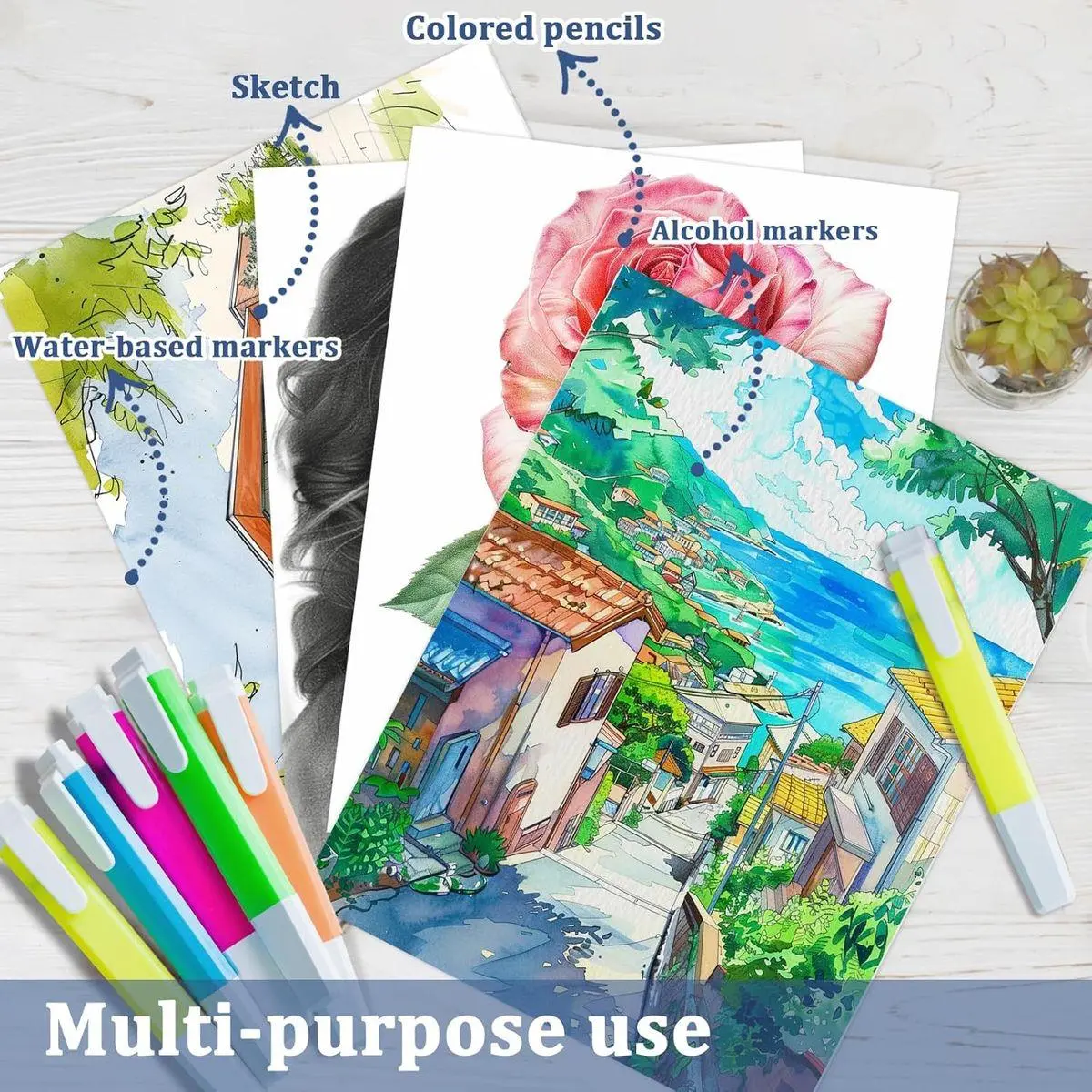 [Perfect for Students & Beginners] This high-quality marker paper pad is the perfect gift for anyone who loves watercolor or acrylic painting, such as children, students, and those who create art. Teachers can use this paper as classroom supplies, making it perfect for educational projects, office supplies, or art projects