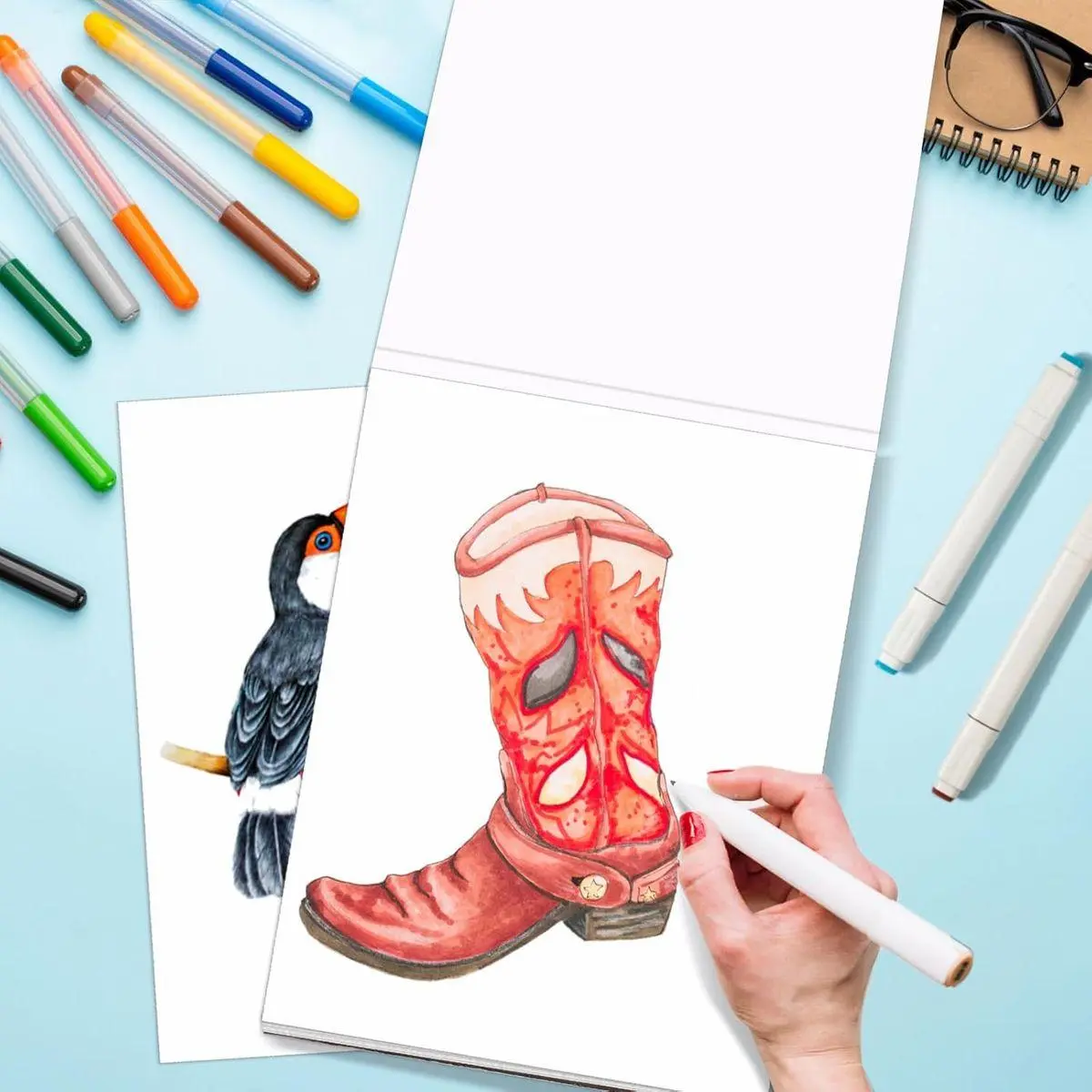 [Professional Marker Paper] Our professional-grade bleedproof sketchbook features a sturdy, Anti-bleed coating prevents 99% of ink penetration, perfect for markers, alcohol markers, water-based markers, gel pens, and fine liners. Studio-grade paper preserves crisp lines and vibrant gradients