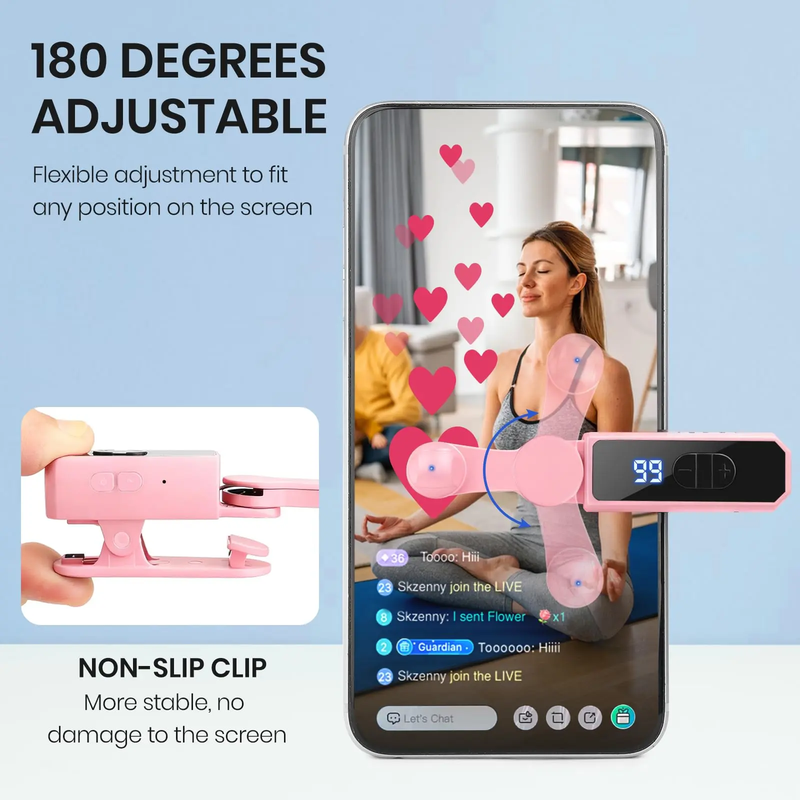 TikTok Smartphone Clicker, compatible with iPhone, iPad, and Android devices, featuring adjustable speed and a rechargeable automatic clicking mechanism—an instant clicker designed specifically for live-stream liking and social media tasks