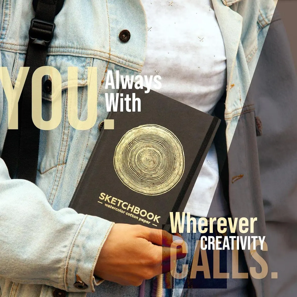 100% Cotton Watercolor Paper – Small Watercolor Sketchbook for Travel & Studio Made with thick 200gsm acid-free cotton paper, this premium small watercolor sketchbook handles gouache, ink, and fine liner with no warping or bleed-through. Ideal for artists seeking a small travel watercolor sketchbook with rich color performance and durability.