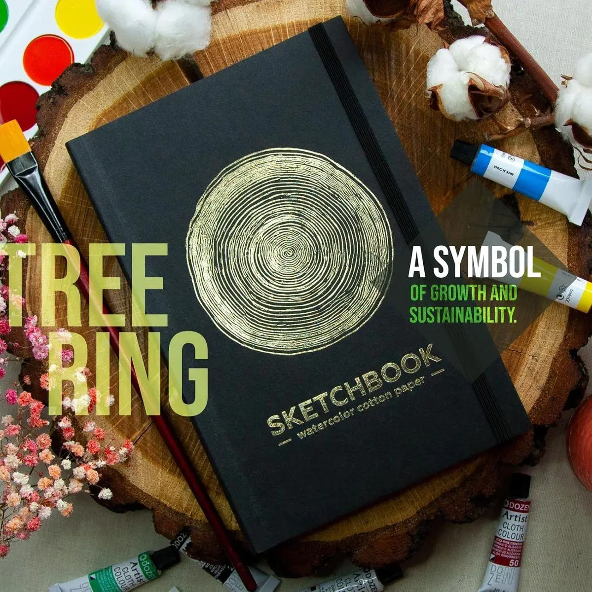 Two Artistic Cover Options – Tree Ring or Cotton Flower – Natural Style for Creative Journaling Choose between two elegant covers: Tree Ring, symbolizing artistic growth, or Cotton Flower, inspired by the 100% cotton paper inside. These textured soft covers reflect nature and make this art notebook a beautiful choice for sketching, note-taking, or gifting.