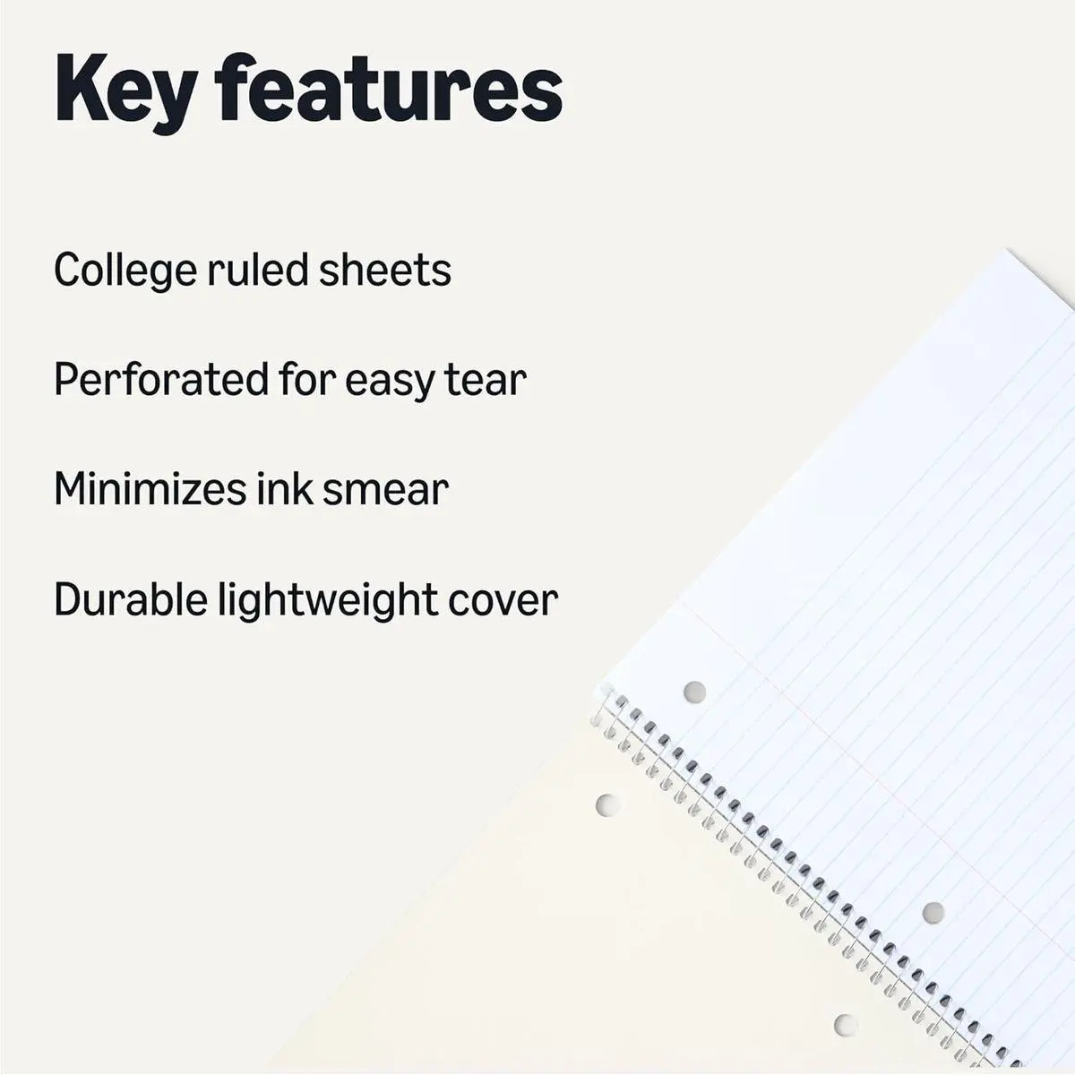 70 sheets per notebook; college ruled lines and perforation for easy removal