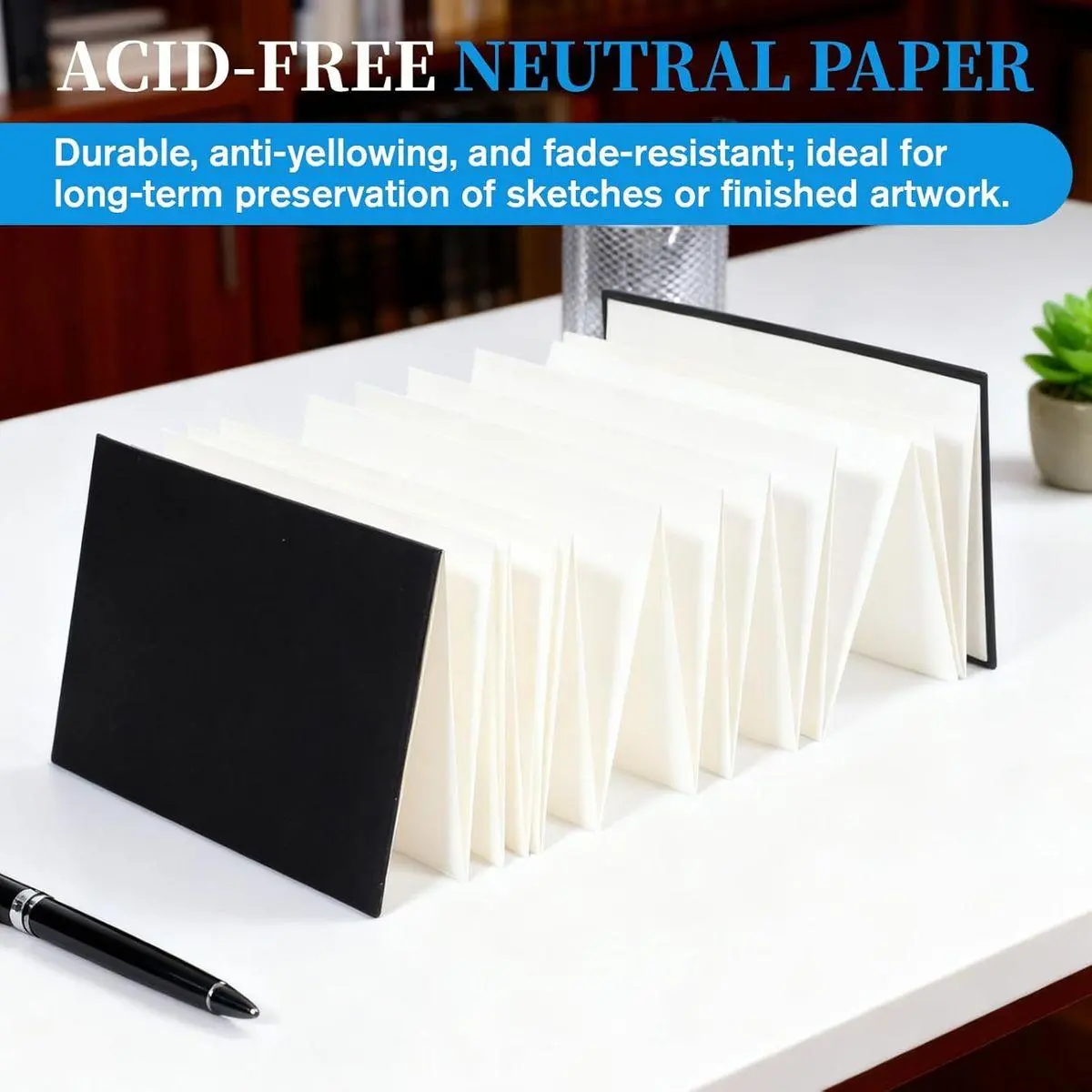 【Accordion Fold Design】The unique concertina-style binding offers eight continuous panels on each side, creating an expansive 15x100cm working surface when fully extended