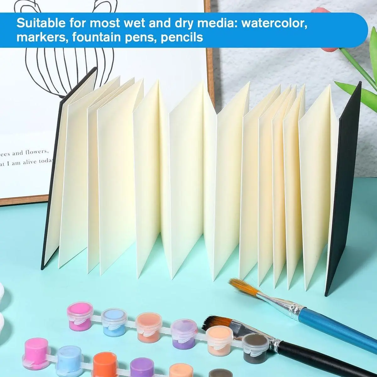 5. Concertina Sketchbook, Watercolour Hardback Concertina, 15 x 100 cm Travel Protable Accordion Sketchbook, 300 GSM Accordion Scrapbook(One Book)