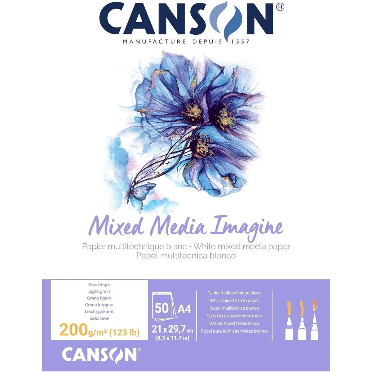 Imagine is an acid-free mixed media 200gsm paper, perfect for both for dry and wet techniques.