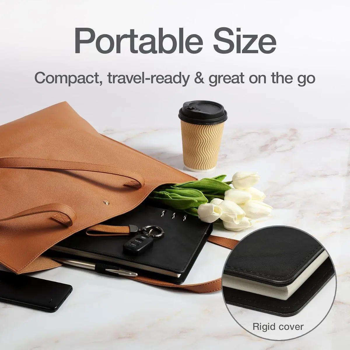 Black faux leather cover sets the tone for job interviews and meetings; an ideal notebook gift for professionals and graduates