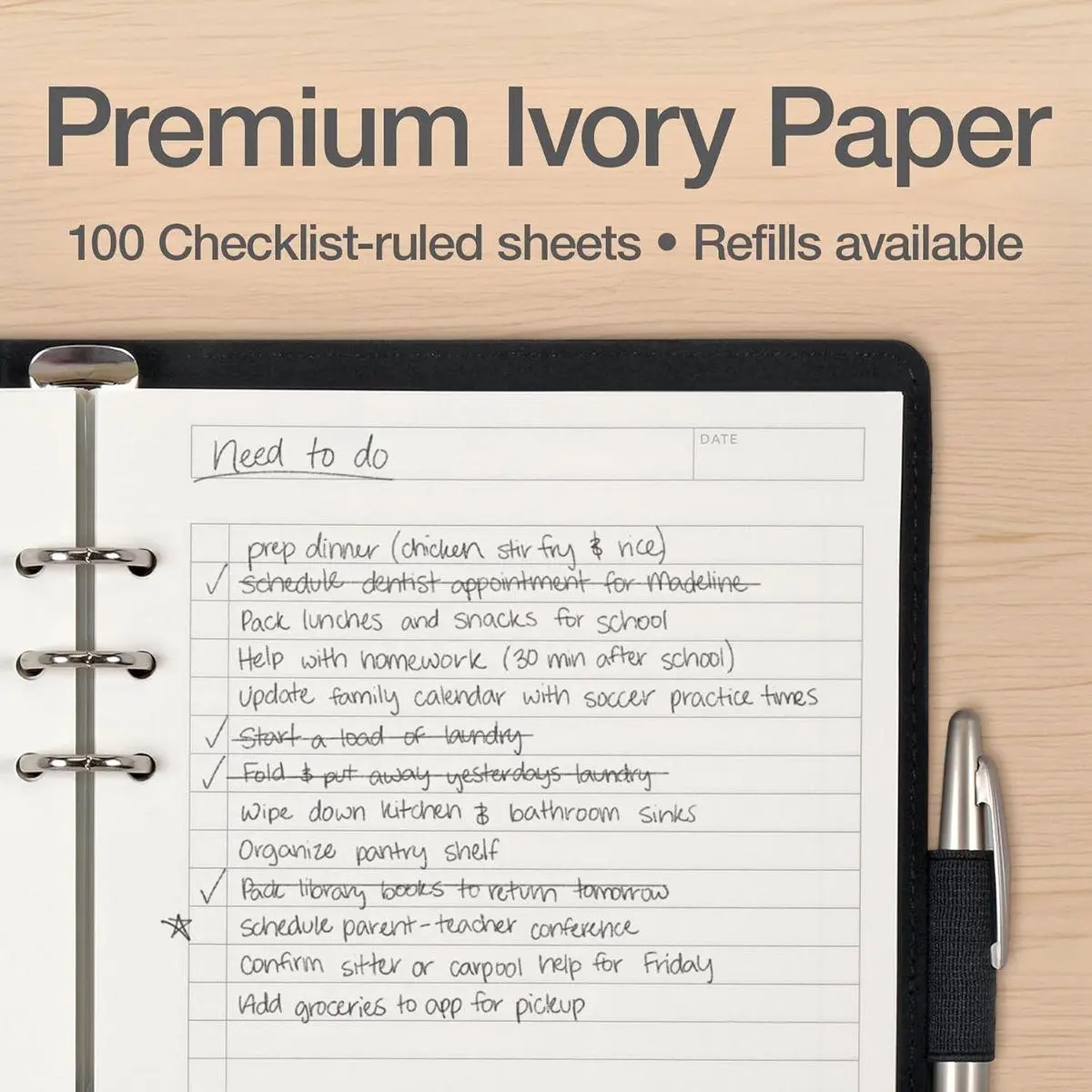 100 Sheets of premium ivory lined paper have purpose and date headers; checkboxes give you to do list notepad efficiency on every page