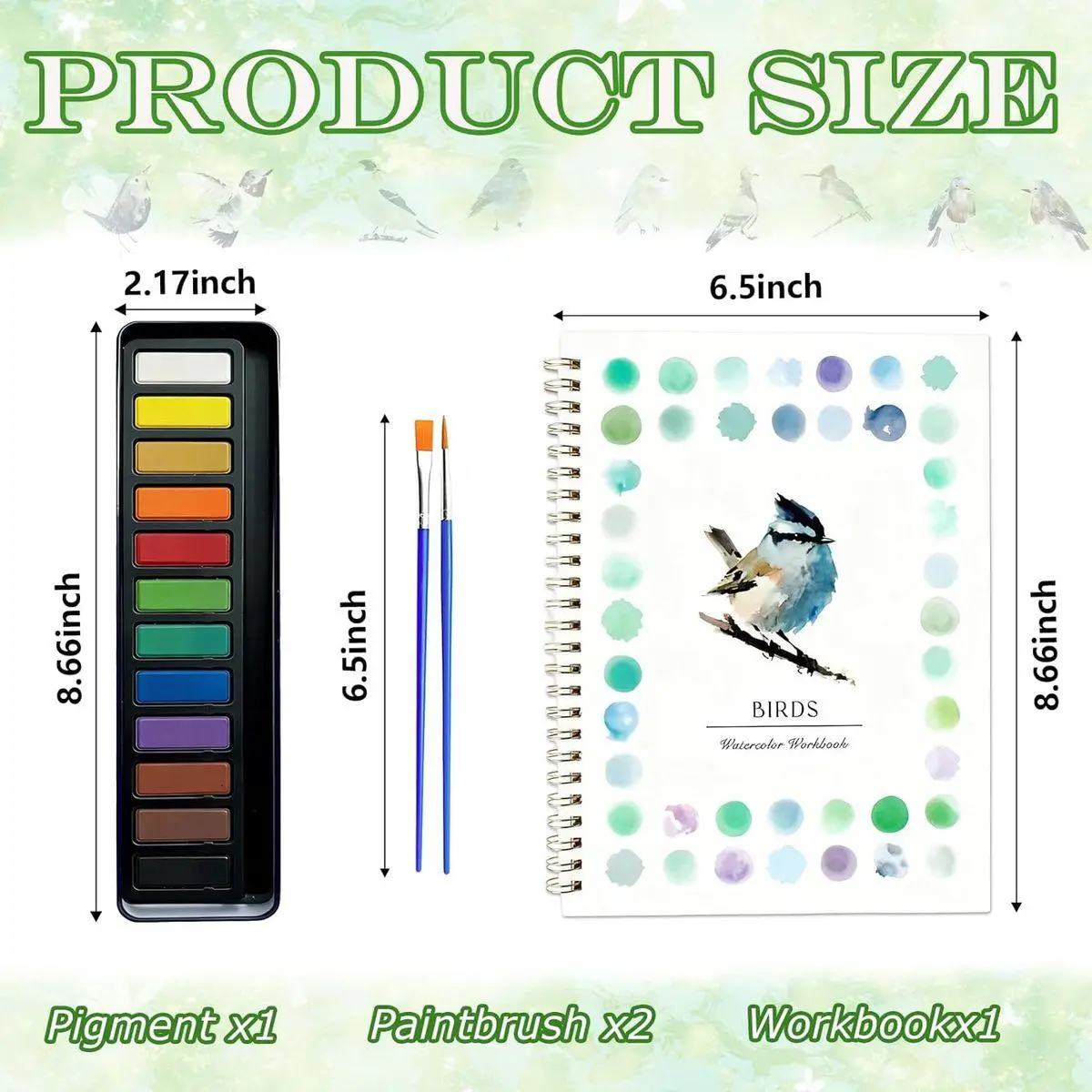 Watercolor Paint Set: The set includes 12 watercolor paints, 2 brushes, and a watercolor paintbook. The paint box lid doubles as a mixing palette, making it perfectly portable. Whether at home, traveling, or outdoors, you can start creating anytime