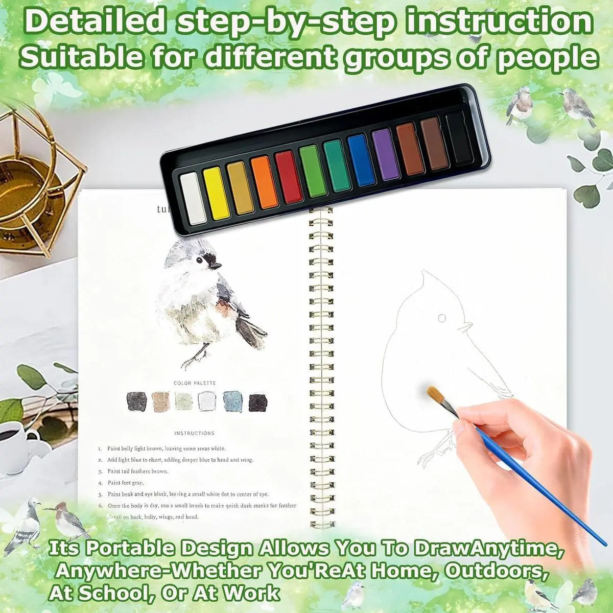 Professional Paper Quality: Made of high‑quality thick anti‑bleed paper, this watercolor workbook effectively prevents color seeping and paper warping. It ensures vibrant colors and neat results, ideal for repeated layering and practice-perfect for watercolor books for adults and beginners alike