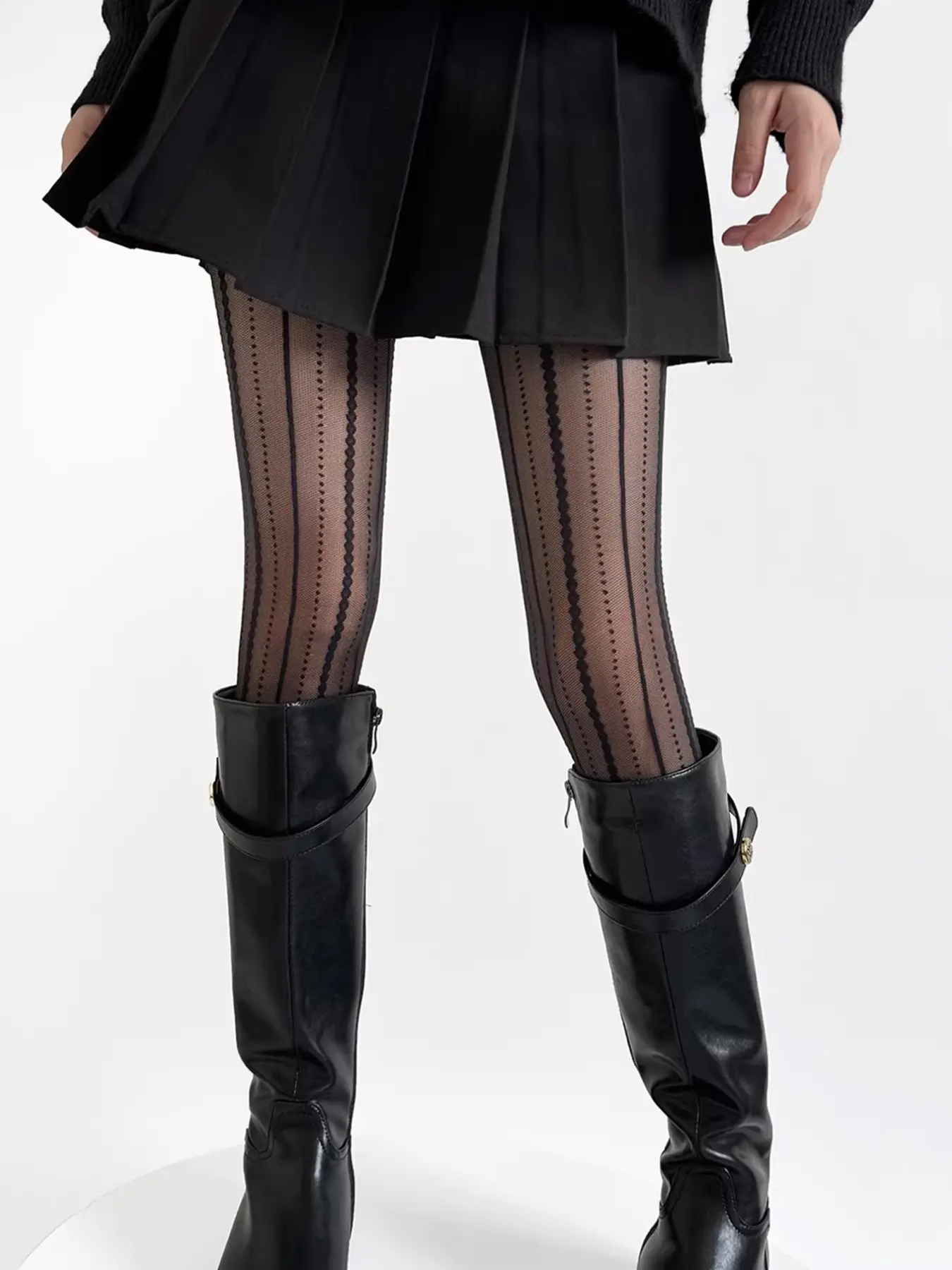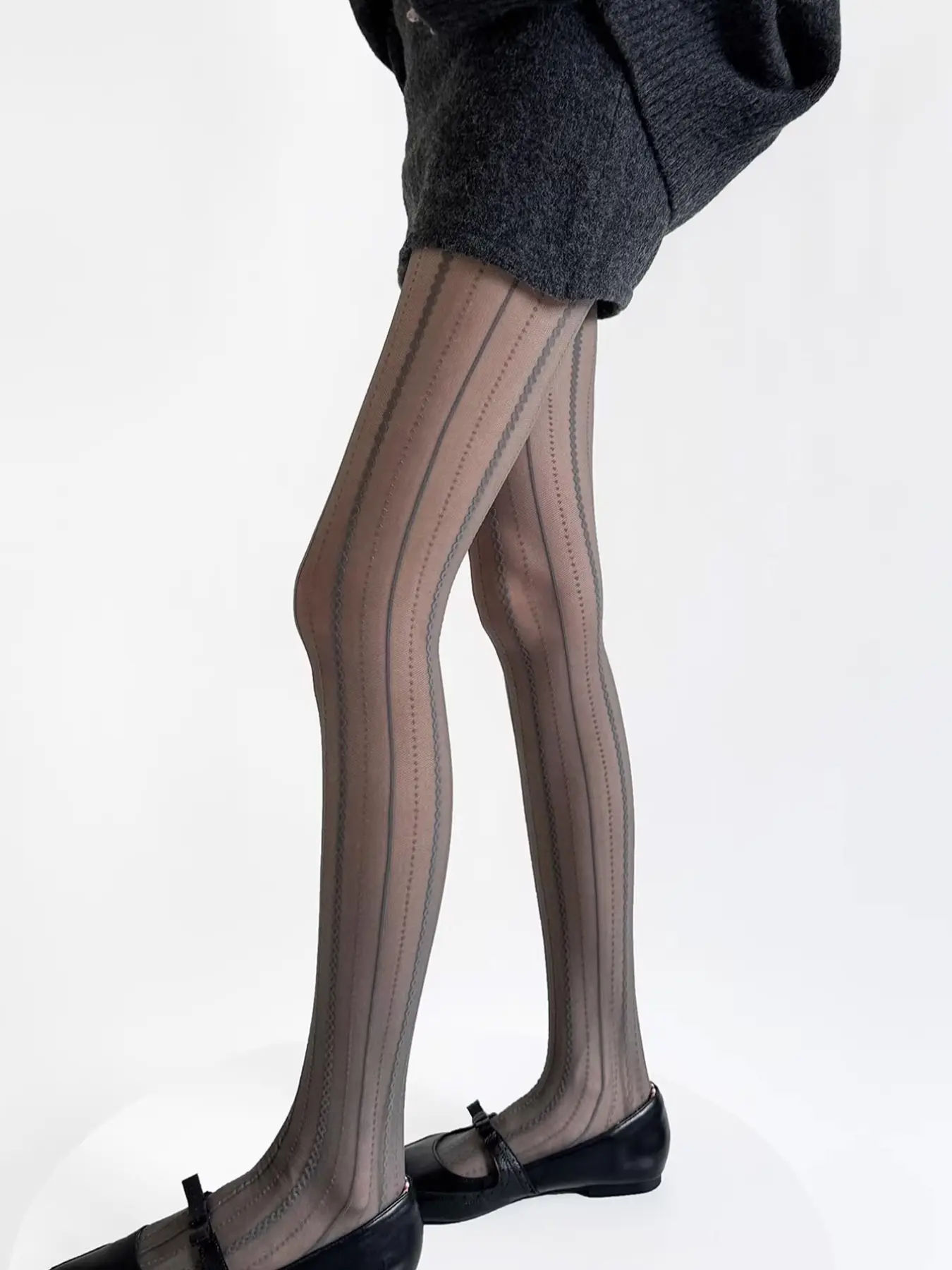 Legs Look Slimmer with Vertical Texture Stockings, High-Waist Plaid Design, Fashionable Slim-Fit Tights for All Seasons