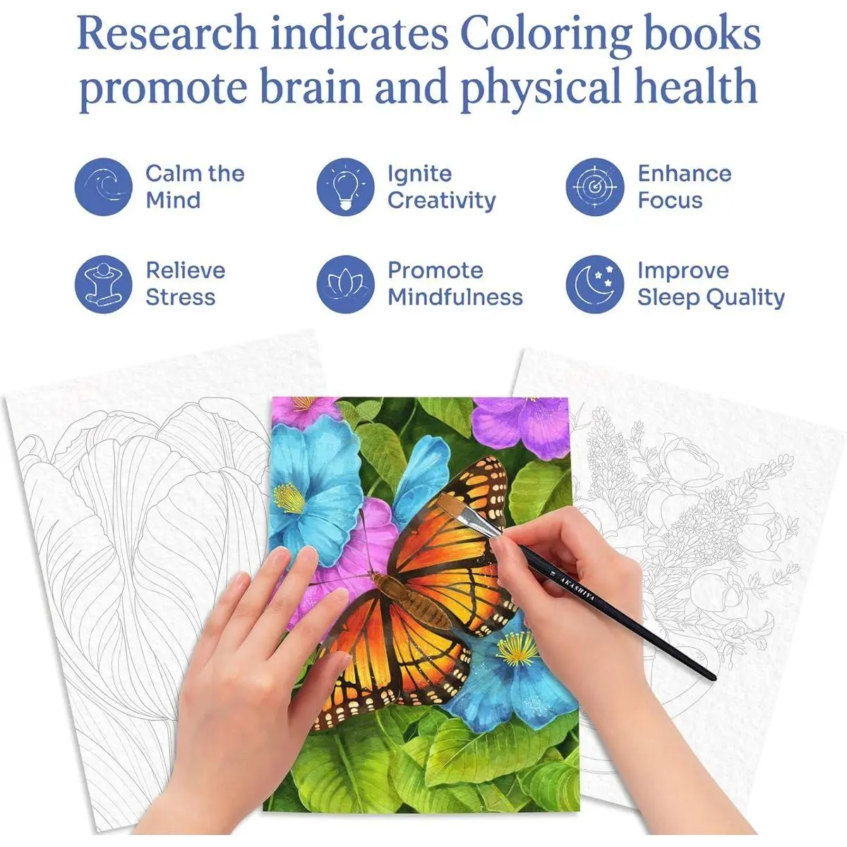Suitable for all skill levels: The water coloring book accommodates both wet and dry techniques and more, including watercolor, acrylic, and colored pencils. Its high absorbency and non-bleeding properties meet the diverse needs of beginners or professionals alike.