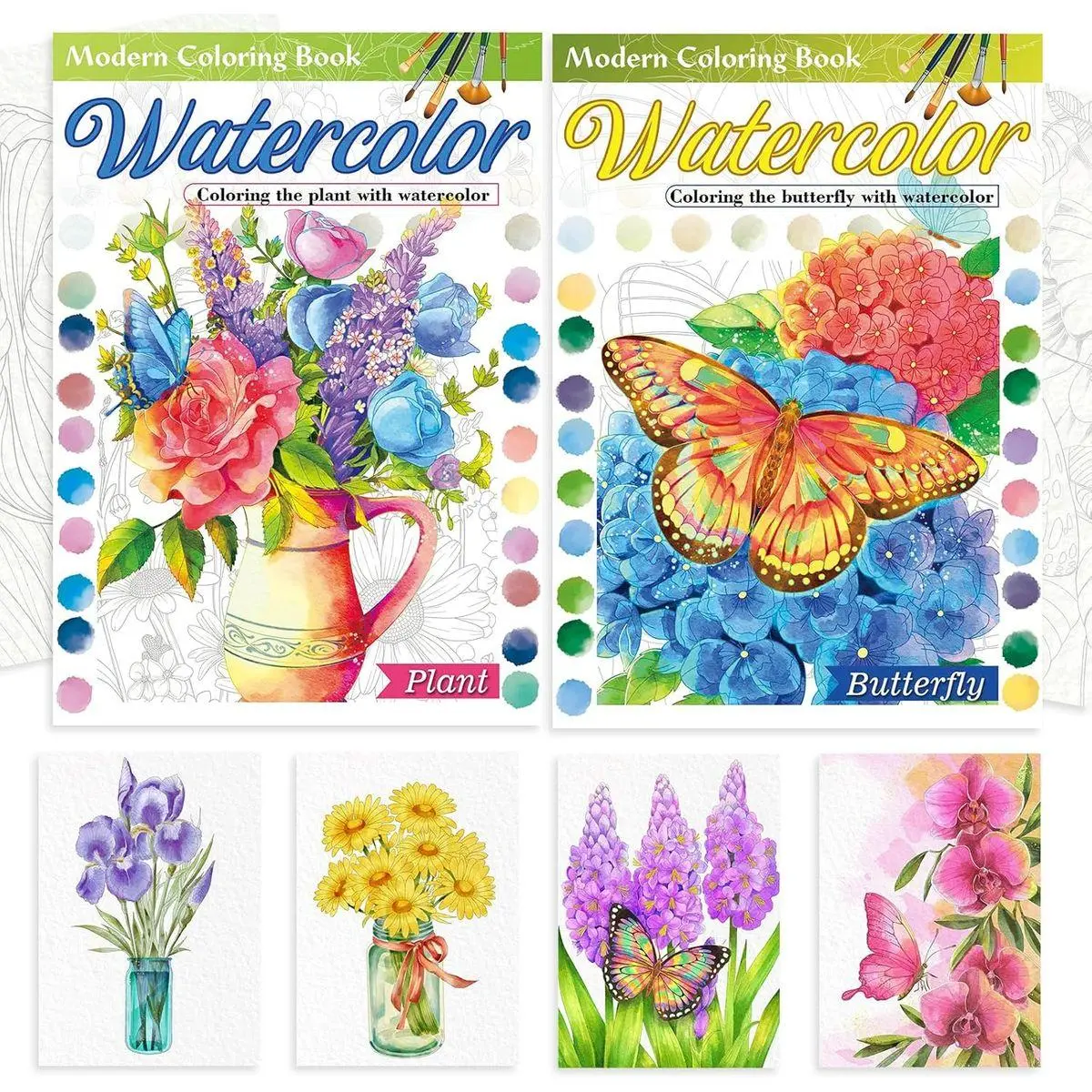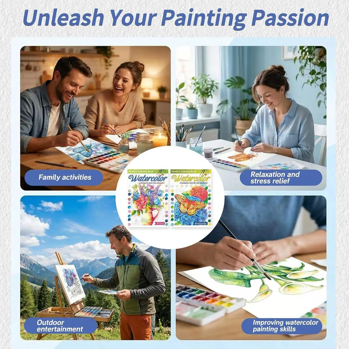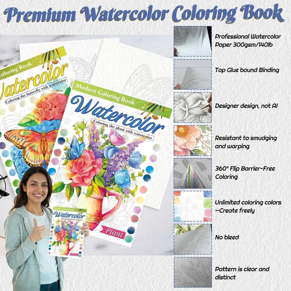 Watercolor Workbook For Adults: Discover 24 unique watercolor designs, where flowers bloom and fluttering beauty. Watercolor paper single-sided 100% cotton(300gsm/140lb), Durable and crease-resistant, it prevents bleed-through and ensures the colored artwork maintains its excellent texture.