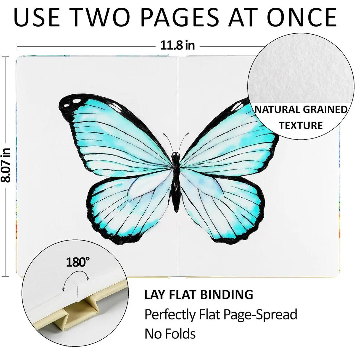 Lay Flat Binding: Any two adjacent pages lay flat to the extent that they form a double-sized single working surface with no gap at all, compared to other less convenient models. That way, the compact size of the closed sketchbook includes a vast sketching area of the opened one