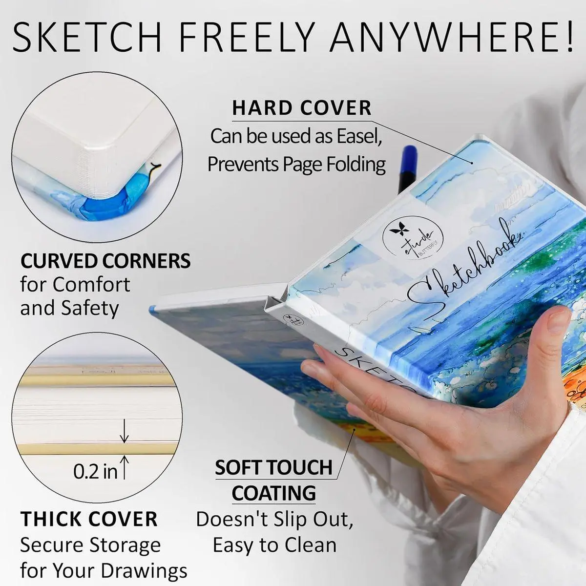 Hard and Sturdy Cover: The durable cover reliably protects the insides from external factors and also provides sturdy backing for sketching as to substitute a pad or an easel. Additionally, the Soft Touch coating prevents the sketchbook from slipping out and provides ease of cleaning