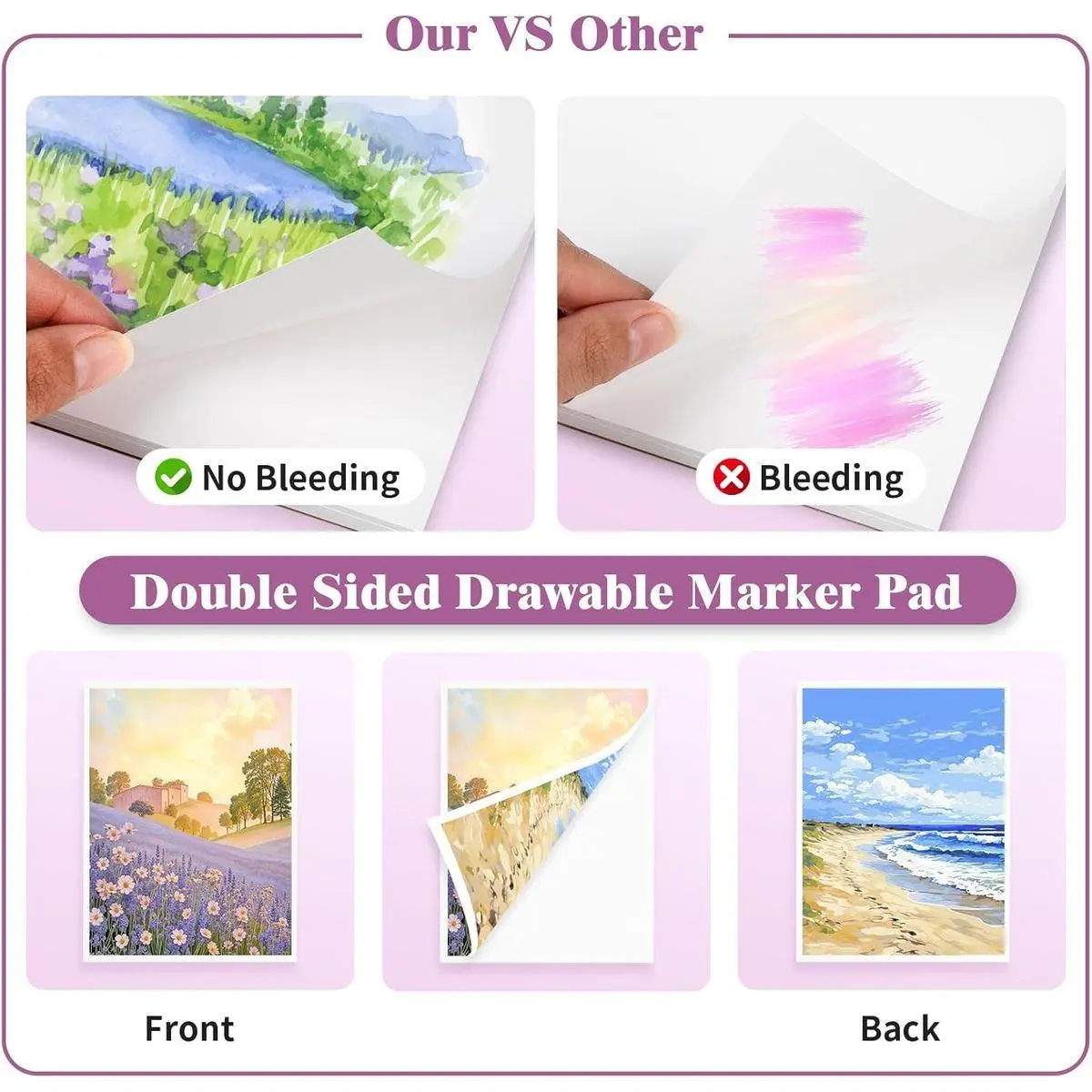 Double-sided, 60 Sheets (120 Pages Total): Create with confidence on both sides! Our marker paper is specially coated to prevent ink bleed-through, allowing you to use the front and back of each page without ghosting or smudging. A total of 120 pages, suitable for all skill levels, from beginners to professionals