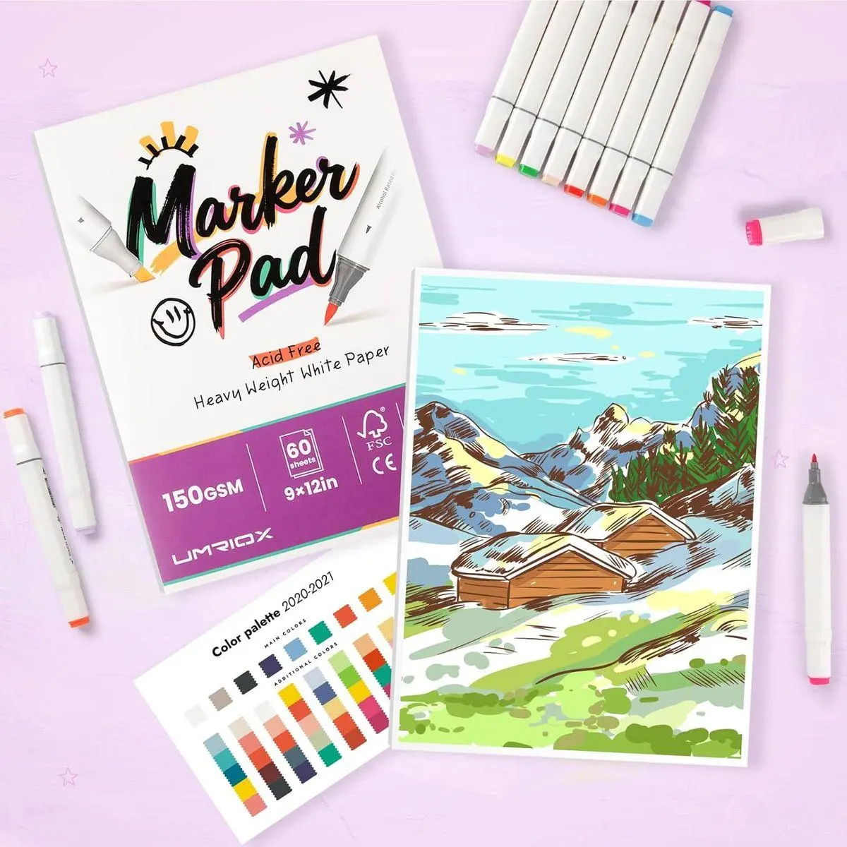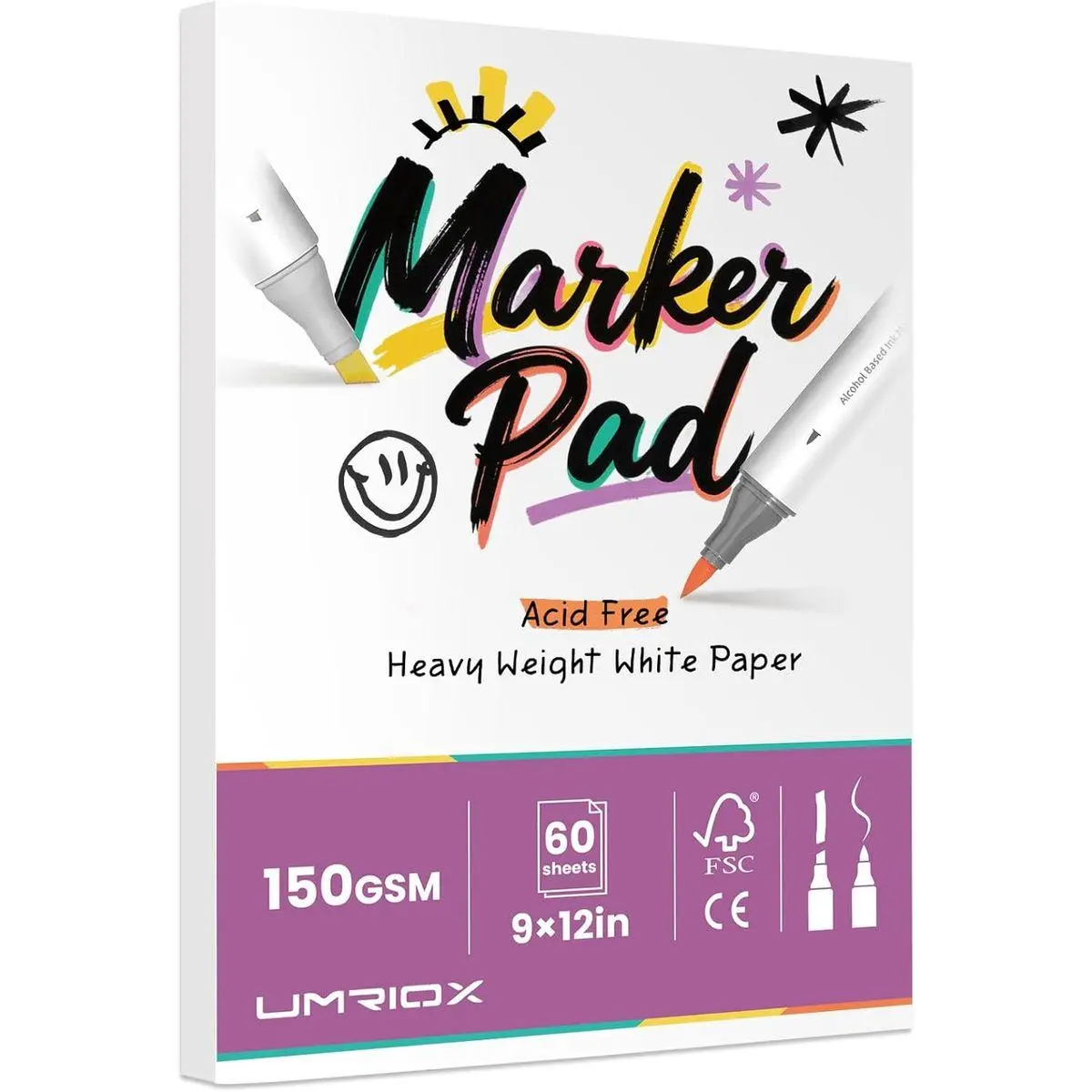 150GSM Drawing Paper: Umriox marker drawing pad is made from 150gsm FSC-certified paper, supports repeated layering and blending without warping or feathering. Acid-free paper prevents yellowing and deterioration over time, ensuring your artwork remains vibrant