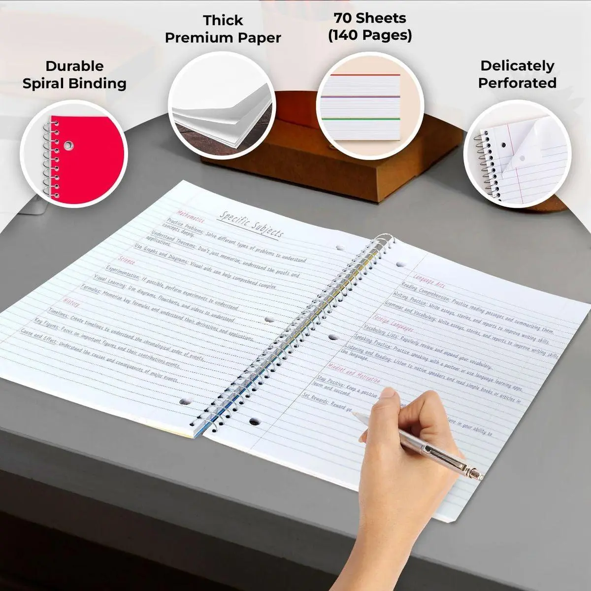 THE RIGHT RULING: These 10-1/2" x 8" college-ruled notebooks fits more writing per page than college-ruled sheets and are enough for different subjects/classes. Each notebook in this bundle has 70 sheets(140 Pages).