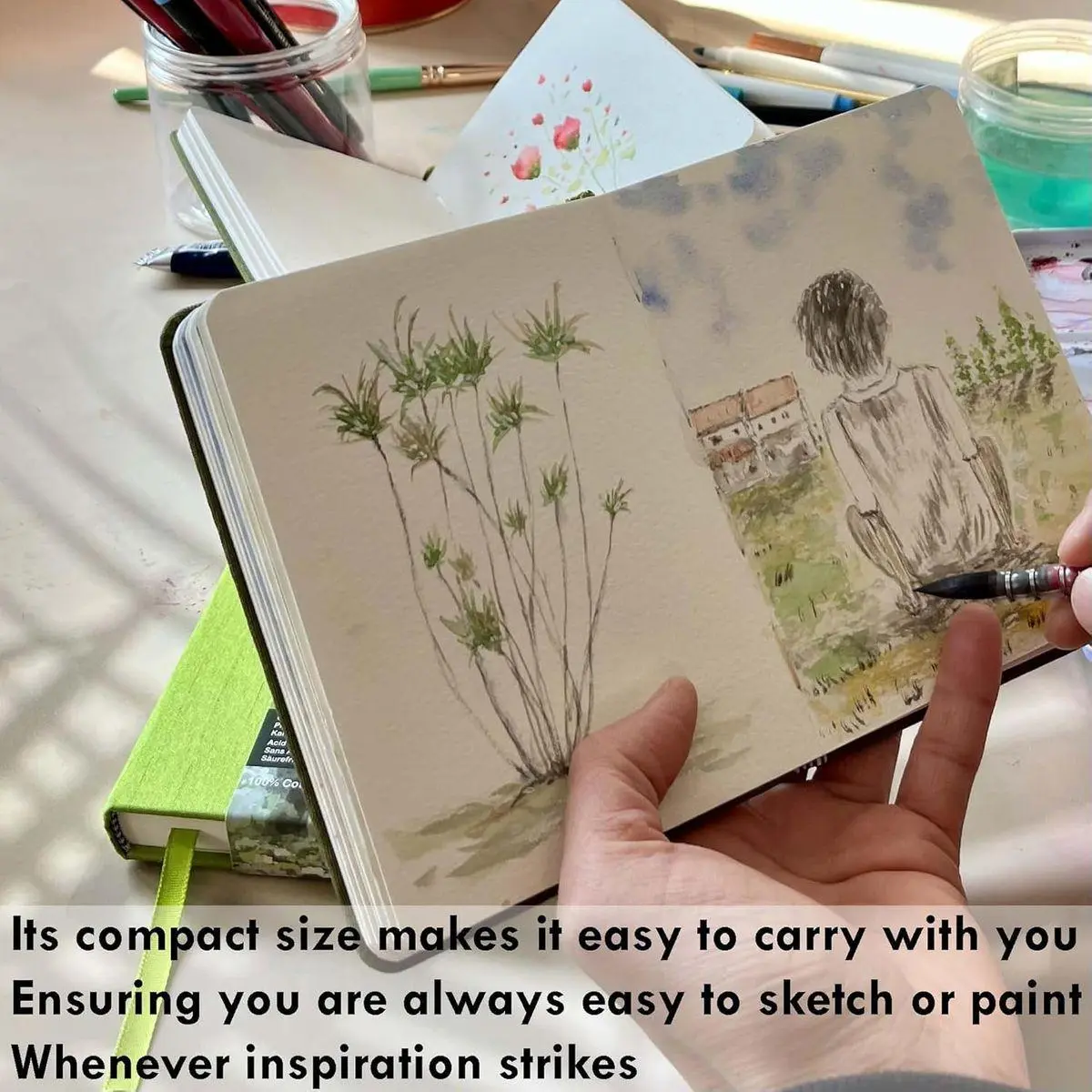 Round Corner And Hardbound:round corner protects you from accidental paper cuts,sturdy and durable heavy board with linen covers support you to paint and draw,the book lays flat for working two-page spreads.